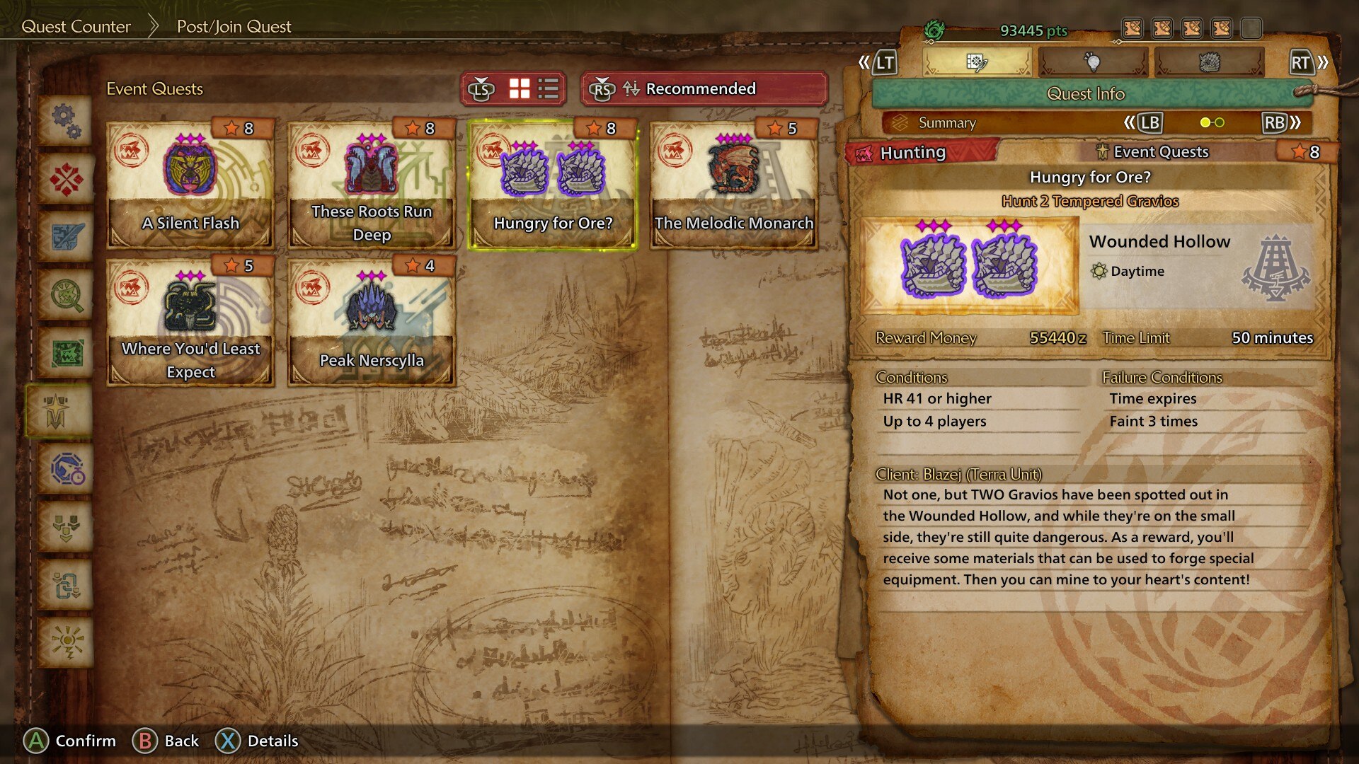 渴望矿石活动任务解锁于猎人等级(HR) 41. 因此,在你开始任务之前,你需要完成低等级并在这方面取得了重大进展高等级活动。基本上,你需要完成高级战役,即杀戮阿克维尔德(飞龙),并进入残局。此时您的心率将提升至 40 或更高。一旦你达到HR 41,你就可以通过与阿尔玛交谈从“活动任务”选项卡访问“渴望矿石”任务。此外,您还可以从弹出窗口或大本营访问活动任务。