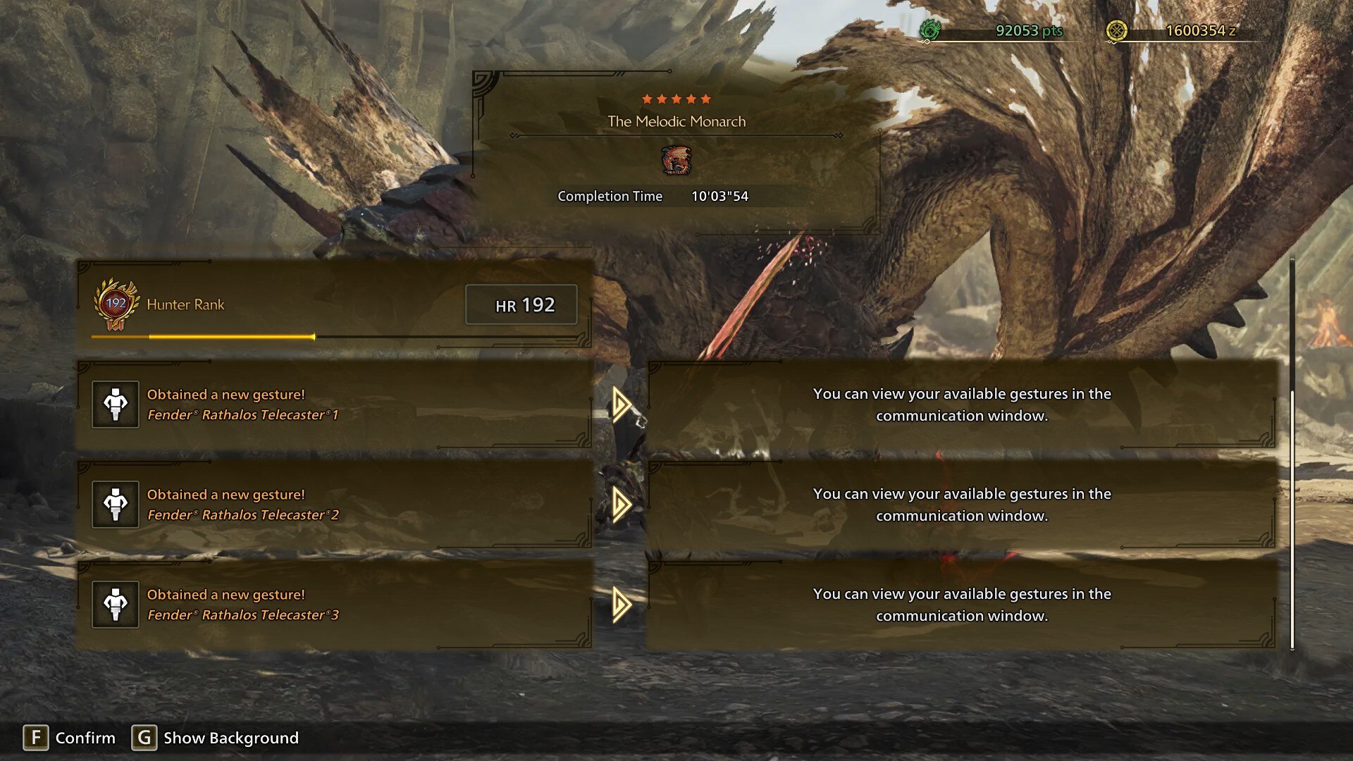 完成旋律君主的奖励是一套独特的手势,基于Fender x 怪物猎人荒野合作。共有3种手势,可以根据你的需要进行配置径向菜单以便快速访问。请注意,这些手势仅在第一次完成任务时才会获得奖励。之后,你只会得到餐券和火龙零件作为奖励。