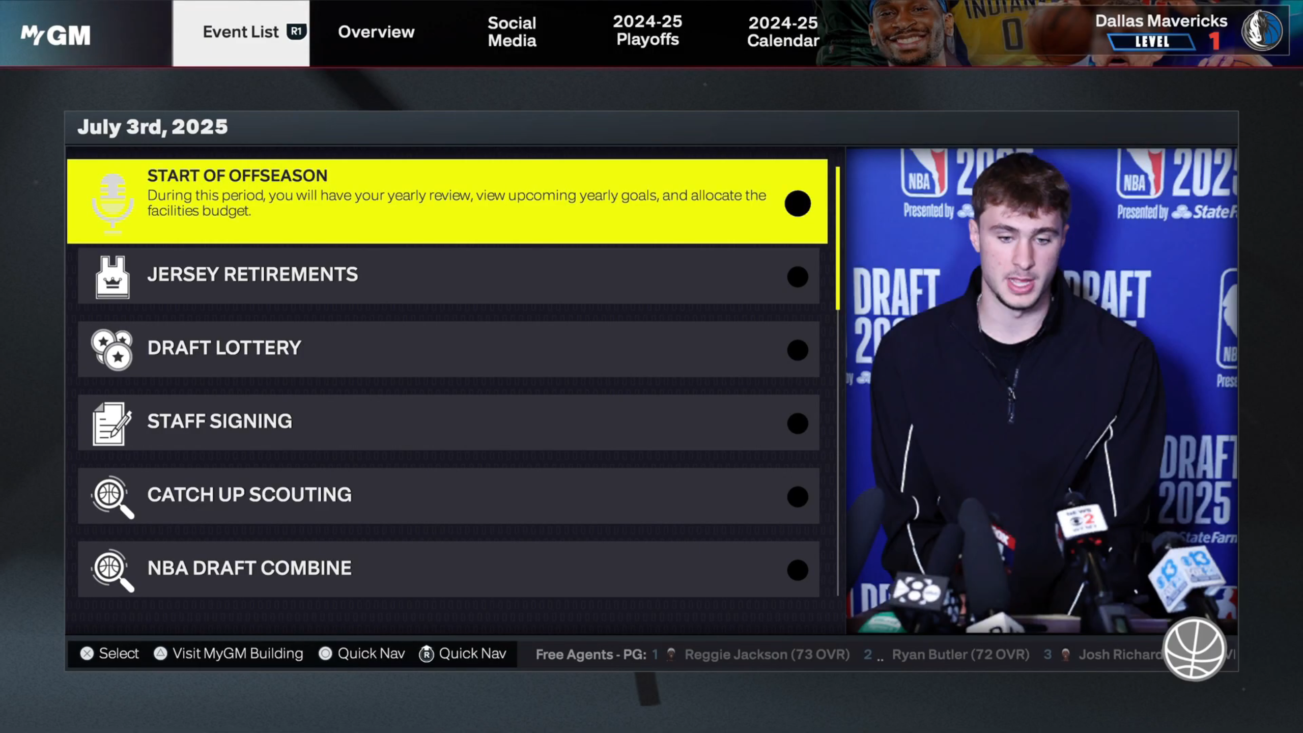 作为新的 MyGM Legacy 菜单的一部分,您可以选择跟踪每次保存中的各种目标。其中包括记录赢得的冠军,甚至验证您对招募未来 MVP 的预测。您甚至可以展示您在 MyGM 旅程中取得的所有成就。