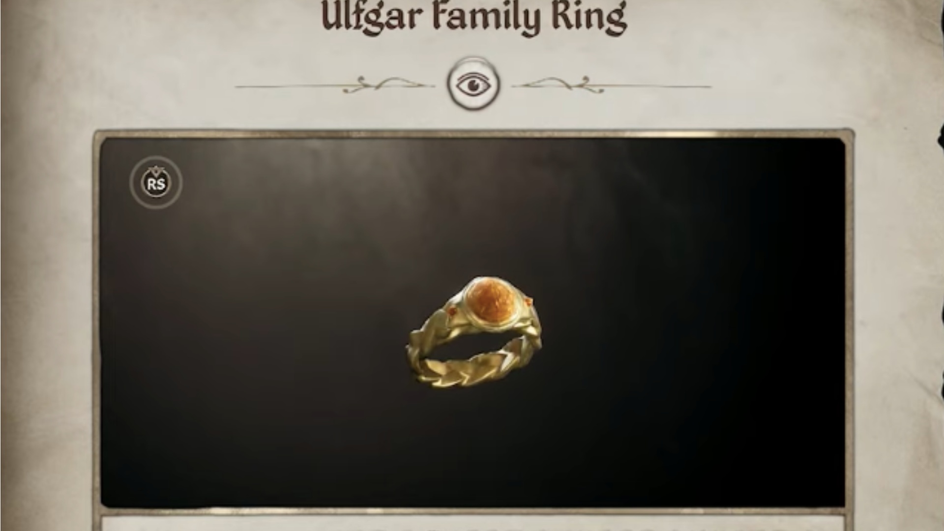 您需要从每个家庭收集一件物品。前往村庄的北部并找到尼万·达尔维卢的房子。进入并收集达尔维鲁仪式匕首。然后,前往赫罗尔·乌尔夫加的家并取得乌尔夫加家族戒指。