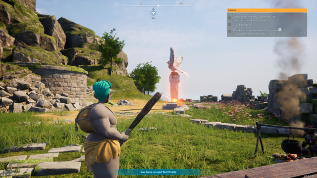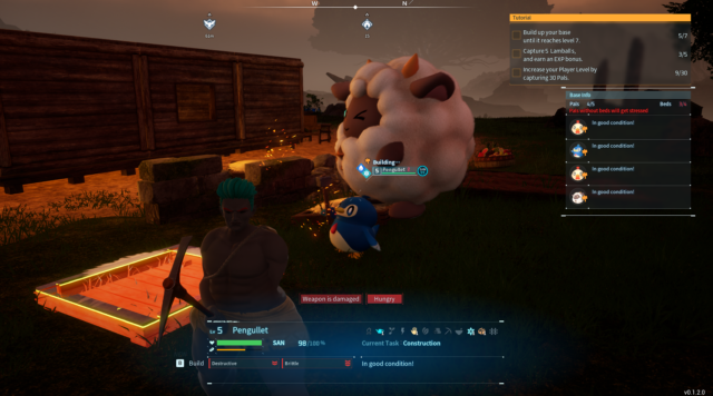因此,开始了熟悉的生存游戏循环“弄清楚我想建造什么或需要生存,然后收集资源来建造它”,与口袋妖怪循环“还与可爱的怪物战斗并捕获它们”混合在一起,但添加了“或者可能杀死它们来制作材料或吃掉它们或让它们工作,或者哦,天哪,那是什么……”