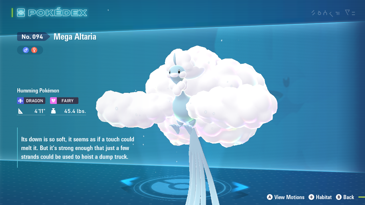 | 祭坛 | 490 英国夏令时。 Mega Altaria 拥有非常平衡的统计数据。然而,《Legends ZA》中能力的缺失对 Altaria 造成了特别严重的打击,因为它失去了 Pixilate。这大大降低了它的进攻能力,使其无法跻身最高级别。 |