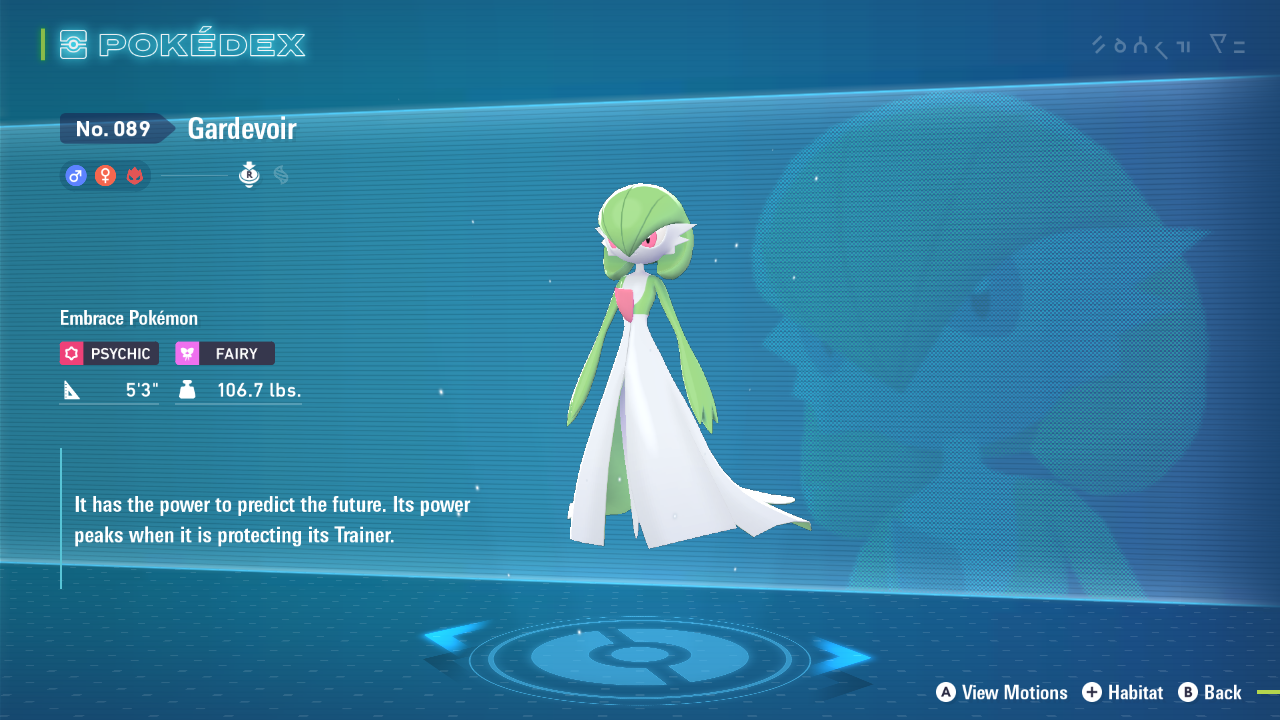 | 加尔德瓦 | 518 英国夏令时间。 Gardevoir是妖精系神奇宝贝之一。它拥有所有妖精类型中最高的攻击能力,而随着超级进化,它的伤害变得完全荒谬。 |