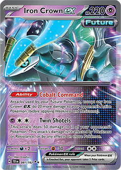 - 钴指挥部(能力):除任何铁冠前身外,你的未来神奇宝贝使用的攻击会对对手的活跃神奇宝贝造成 20 点额外伤害(在施加弱点和抵抗之前)。