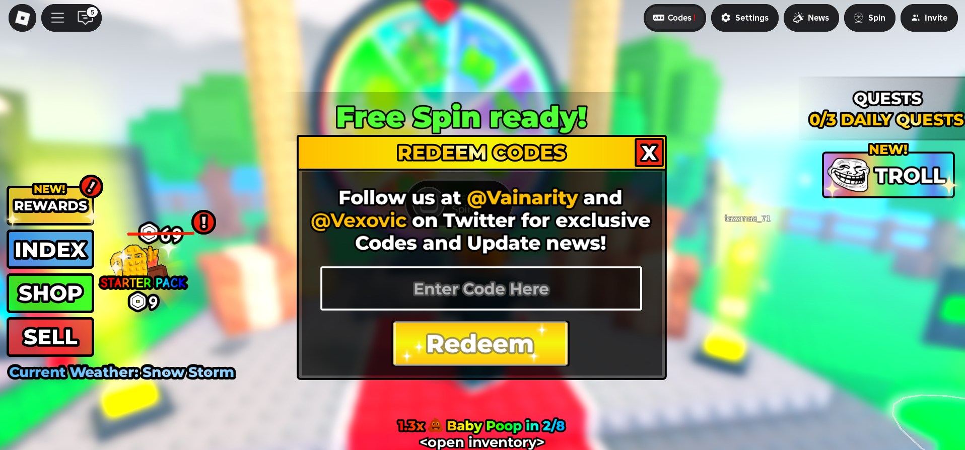 兑换最新的 Poop a Brainrot 代码即可获得免费现金、提升和奖励,帮助您在游戏中更快地进步。