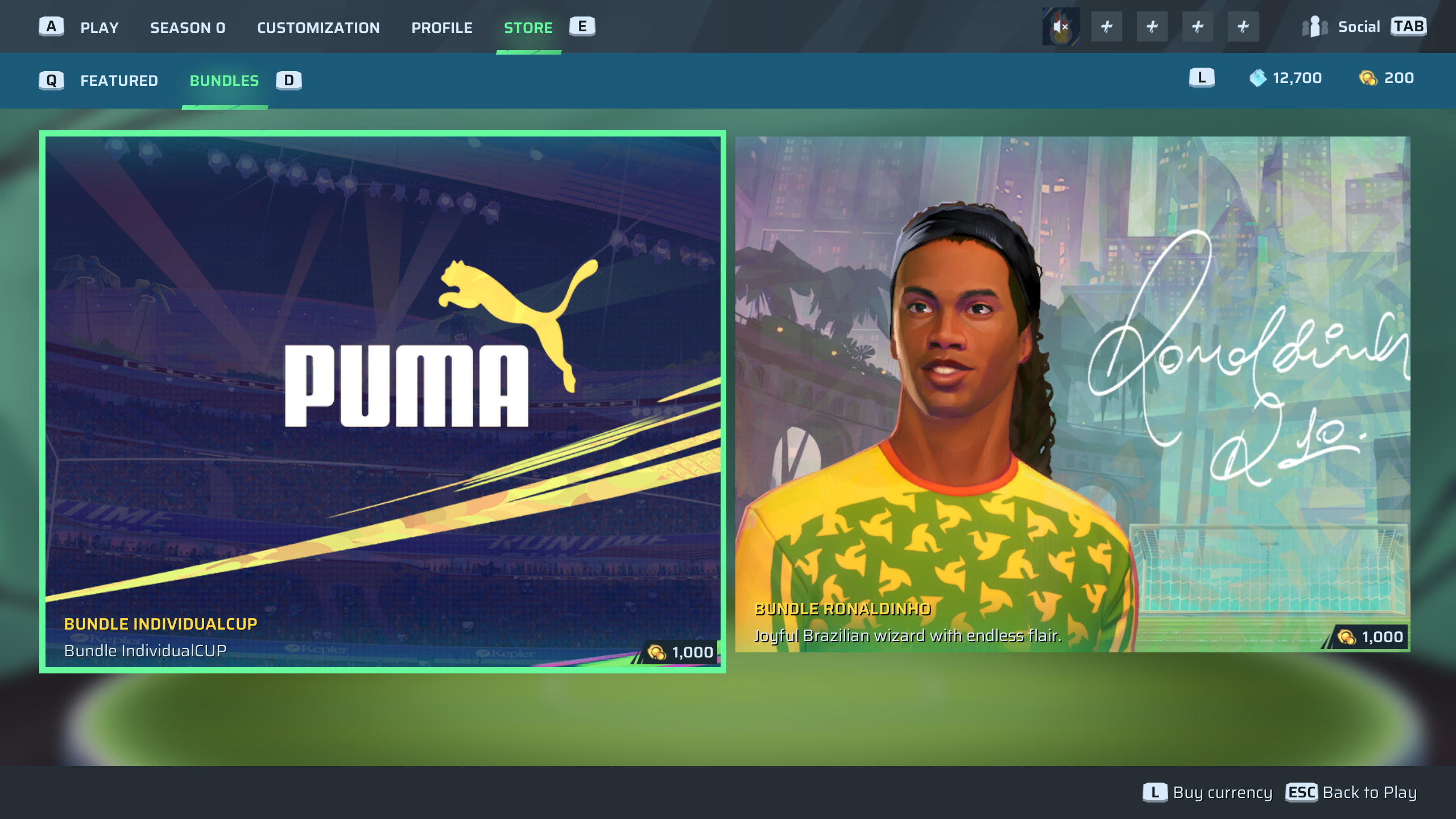 PUMA 捆绑包与 Ronaldinho 捆绑包类似,需要花费 1,000 Quants。捆绑包是高级物品,只能使用定量货币购买,不能使用区块购买。与区块不同,量化货币无法通过比赛获得。这些必须来自季票或从游戏内商店购买。