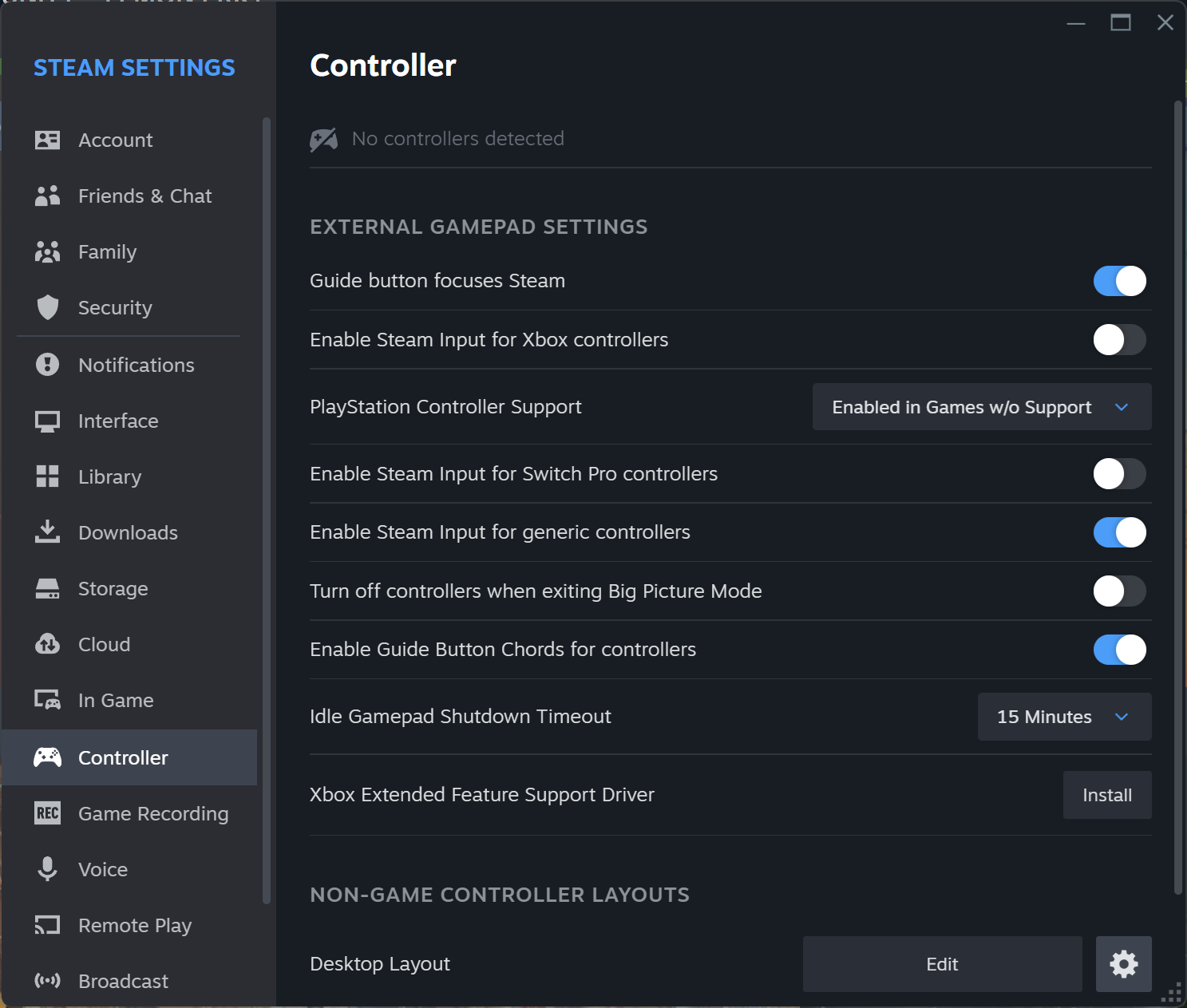 检查 Steam 是否检测到您想要用来玩 Roadcraft 的控制器。如果没有,请继续将其添加到控制器列表中。此外,您可以尝试删除当前未使用的其他控制器。只留下您想用来玩游戏的控制器。