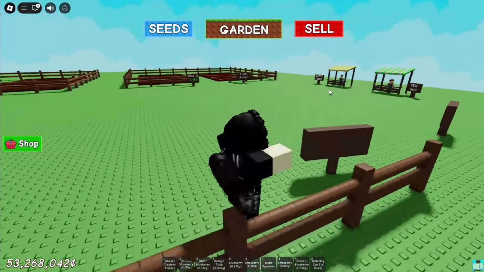 - 面向种子箱或摊位招牌站立。
