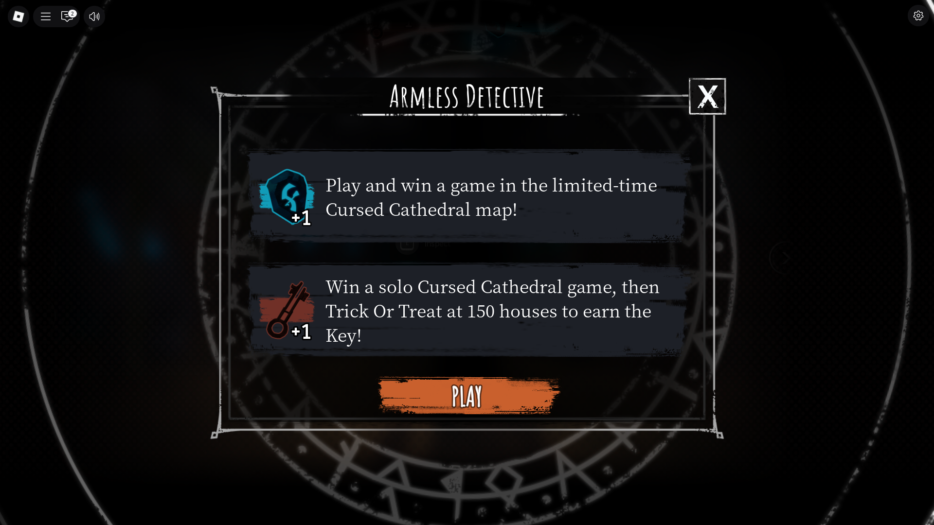 《无臂侦探》是最新万圣节聚光灯活动中的众多特色游戏之一。与所有其他游戏一样,您需要完成两个主要任务。每个任务都会奖励你一件特殊的物品;完成两者都会给你一个符文和一把钥匙,它们对于解锁诅咒清算中心内的活动奖励至关重要。