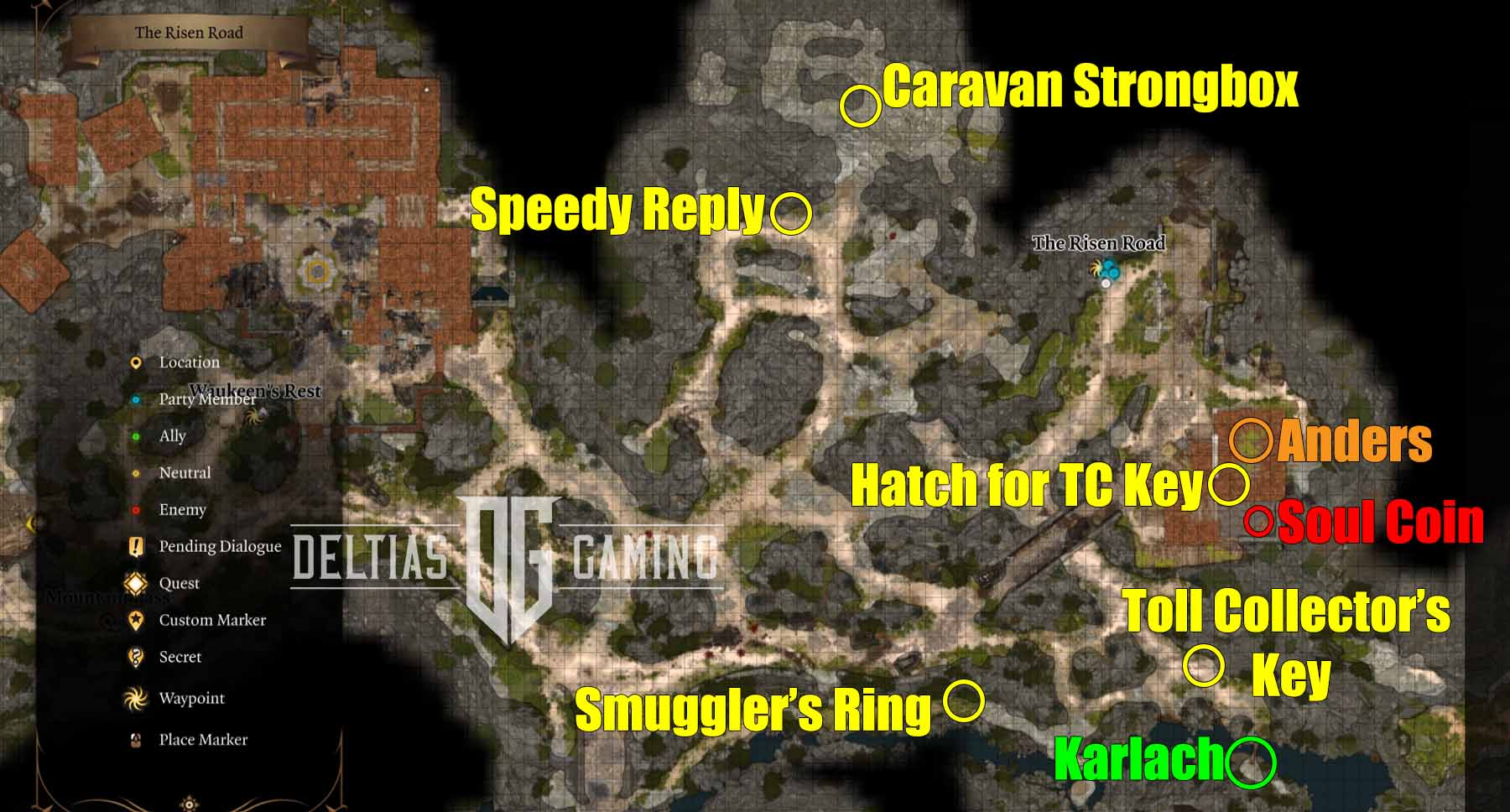 后来与守卫交谈时,你会发现他们正在为一位非常富有和有权势的人运送一批货物到博德之门。如果你想自己拿走保险箱,你必须通过 15DC 恐吓检定,然后再通过另一次 15DC 恐吓或说服检定。通过两项检查后,鲁根将放弃盒子。如果鲁根死了而奥利还活着,他会毫不费力地交出盒子。最后,如果你未能通过鲁根的对话检查,那么获得保险箱的唯一方法就是偷箱子。
