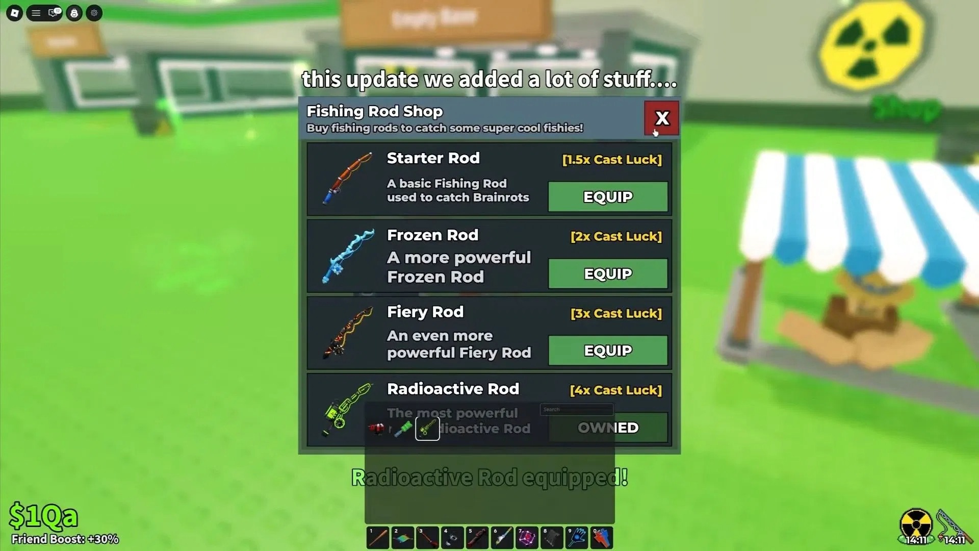 - 放射性棒:获得 15 次重生后,您可以花费 1000 万美元购买此一次。这样做将使您每次用鱼竿钓鱼时都能获得 4 倍运气。