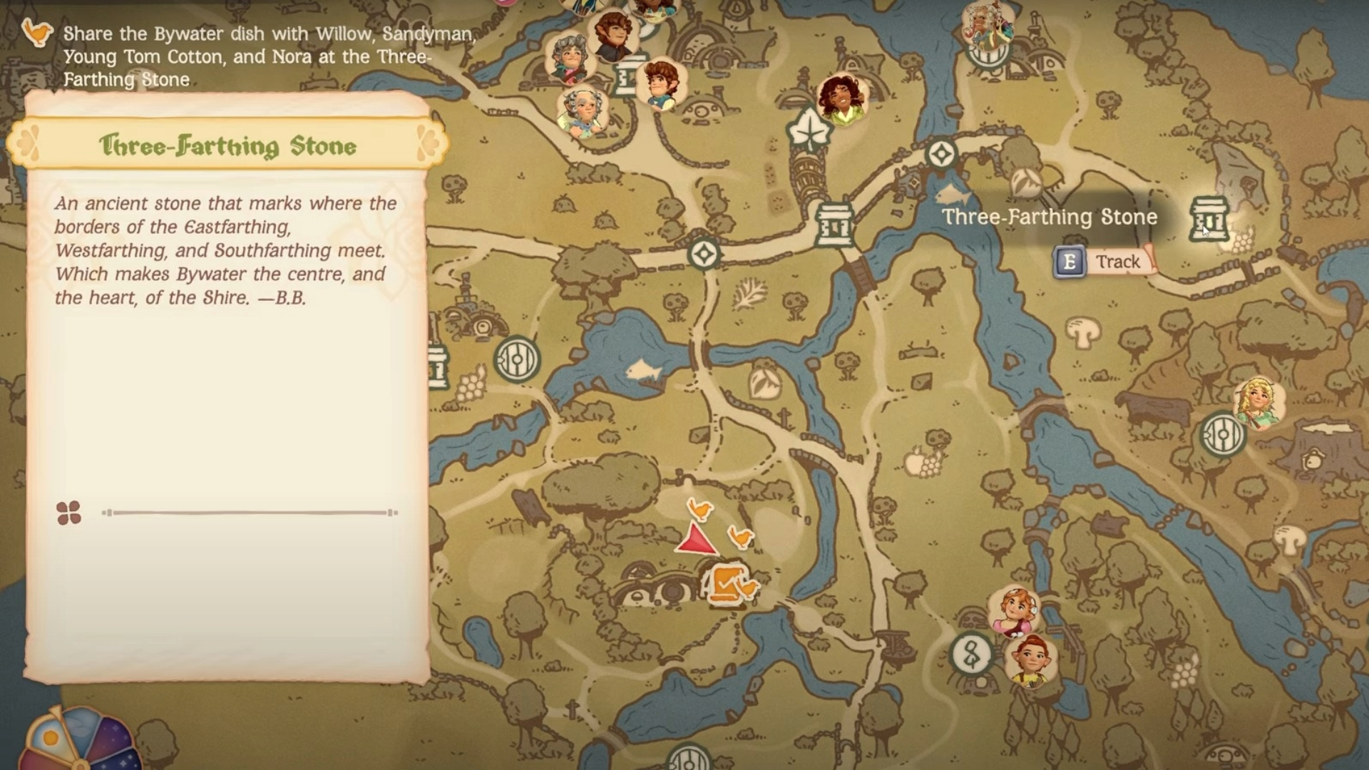 三分钱石的位置在滨水村战役任务中首次被提及。在这个任务中,你必须同时与四位客人共享一顿饭,即桑迪曼、诺拉·布罗斯、威洛·图克和汤姆·科顿。但是,您实际上不必等到该任务才能访问此特定位置。相反,它从游戏一开始就可用。因此,如果您知道三分钱石的位置,您可以随时前往那里并解锁它。