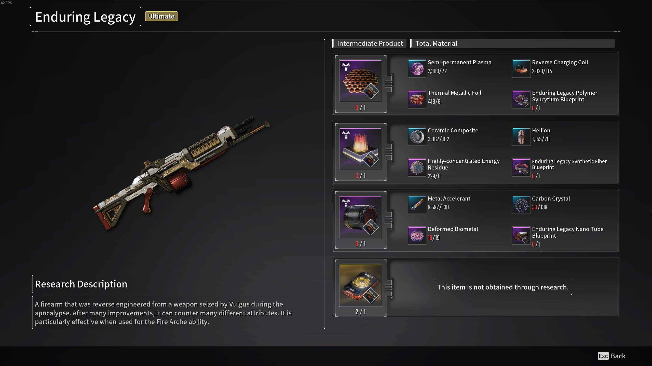 终极持久遗产需要您达到精通等级 1 级,然后才能与阿尔比恩的魔导师阿奈斯一起制作。此外,一旦您收集了所有需要的材料以及 100,000 金币即可制作。最终,Enduring Legacy枪械需要4个小时的研究时间才能完成。
