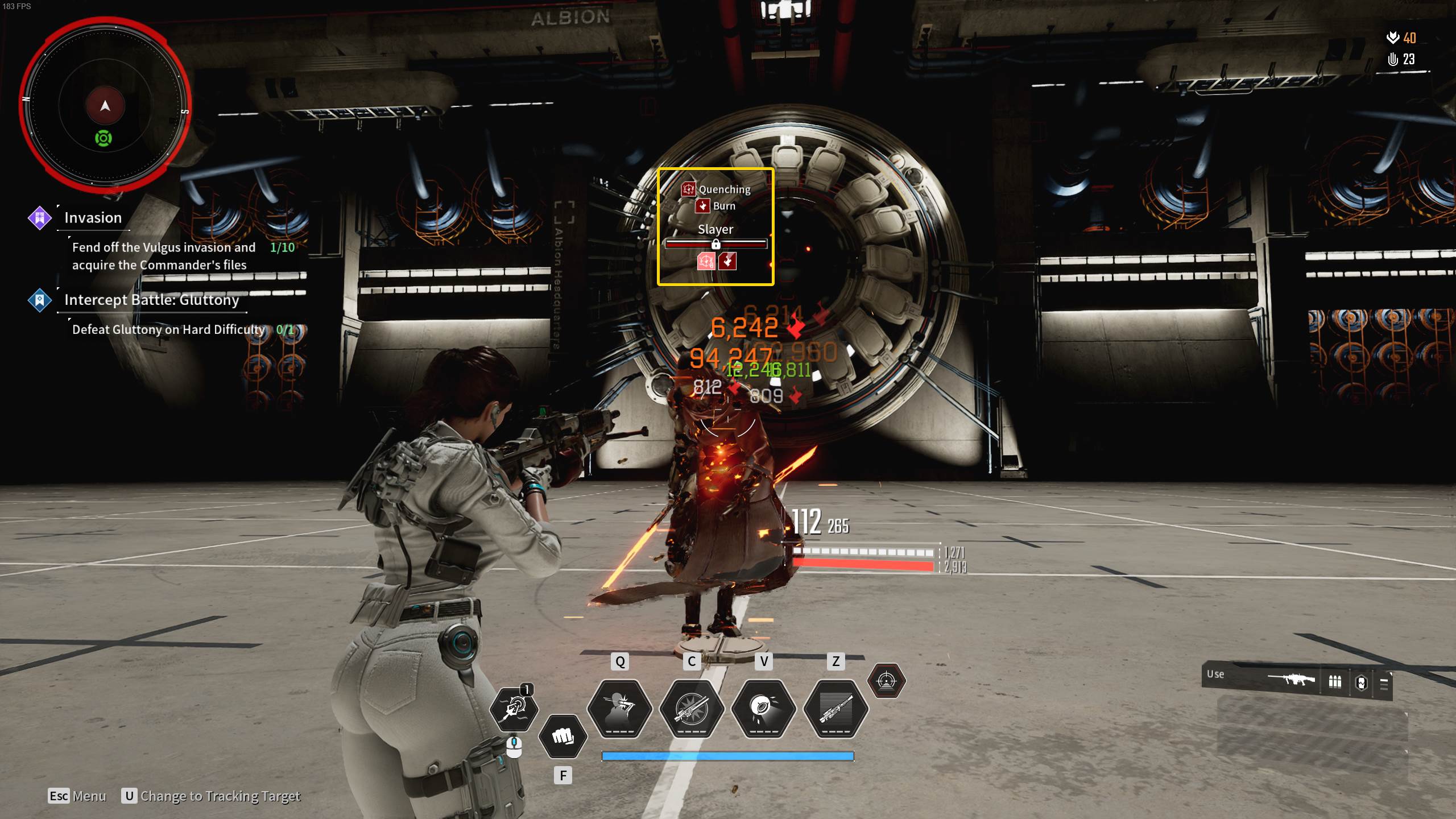 - 击中敌人时,增加该属性(火/冰/电/毒)对应的状态效果触发率,并对目标敌人施加独特技能“淬火”。击中被烧伤的敌人时,增加枪械攻击力并将此增益效果应用于攻击。