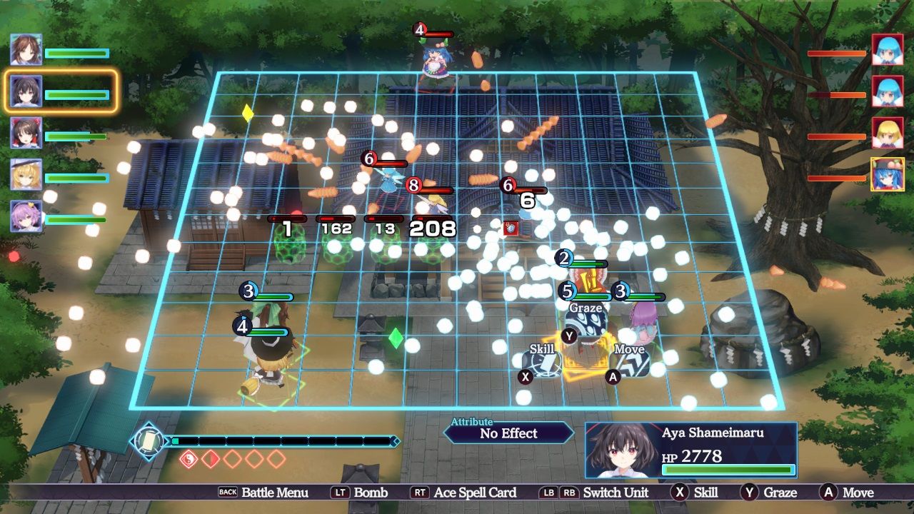 每个角色都具有针对不同情况的独特技能。例如,灵梦是一名坦克治疗师,而魔理沙虽然攻击力强,但很脆弱。角色实时构建动作点,因此时间管理和快速命令是必须的。该游戏还具有角色扮演元素,包括升级、解锁新符卡,甚至掉落物品。