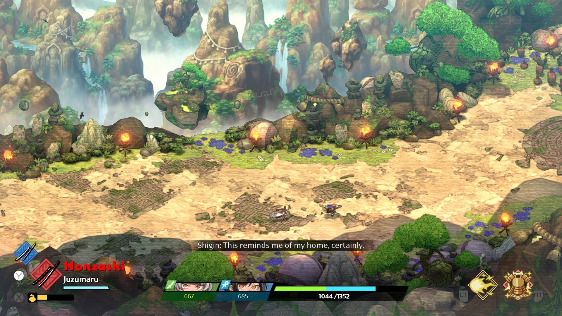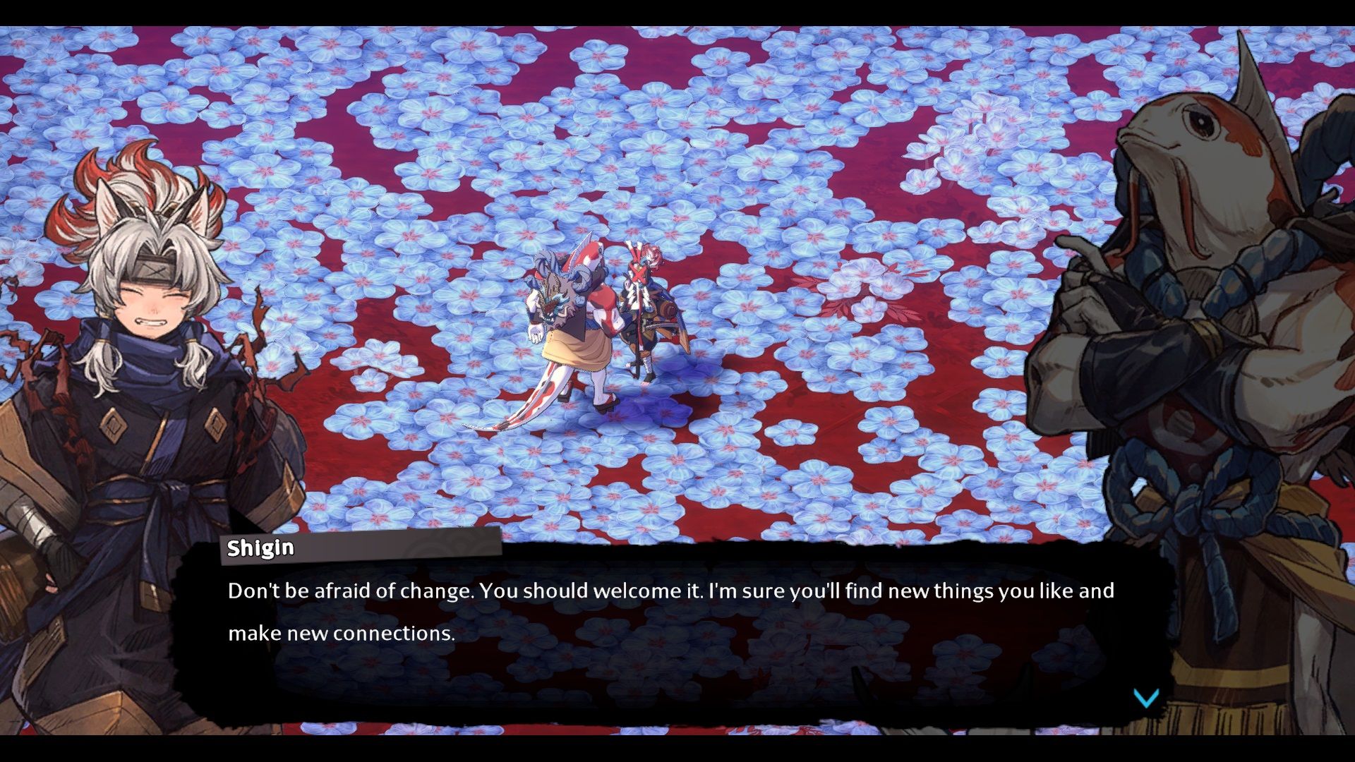 这个标题有一种非常迷人的艺术风格。视觉呈现很大程度上借鉴了日本传统艺术,而角色设计则是现代与古典美学的完美结合。与此相关的是,游戏的氛围也非常有趣。对时间流逝的关注意味着大多数 NPC 在不同的生命阶段都有多种设计。你所战斗的每个生物群落都有独特的氛围。村庄的缓慢扩张创造了强烈的进步感。