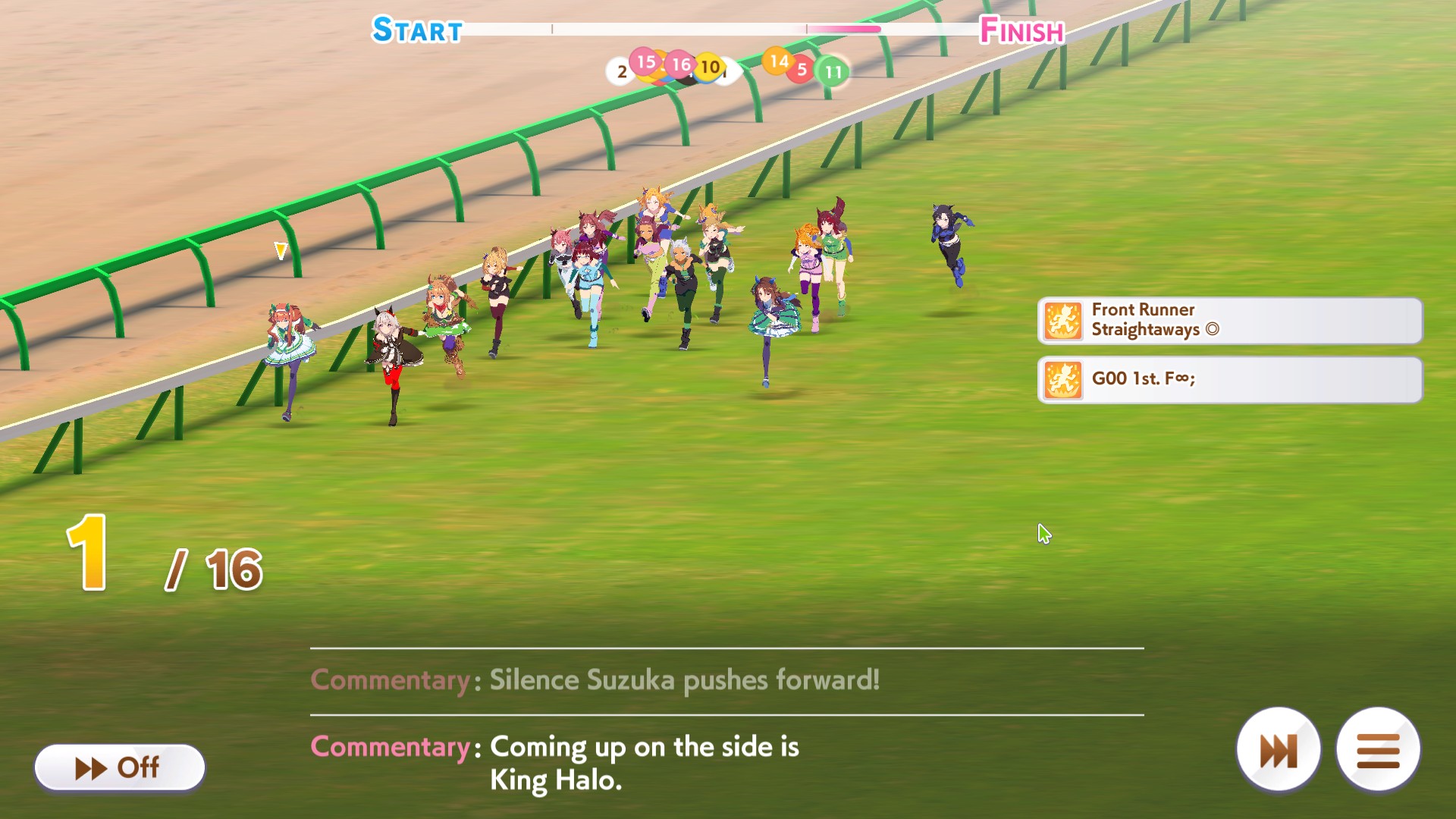 专注于学习在最后冲刺中激活的技能,从最后一个角落开始直到终点线。在比赛的这一阶段,umas 的目标速度被设置为其统计数据允许的最大限制,任何有助于更快达到该速度的技能对于赢得比赛至关重要。这里有一些罕见的技能,每项技能下方都写有它们的正常版本。
