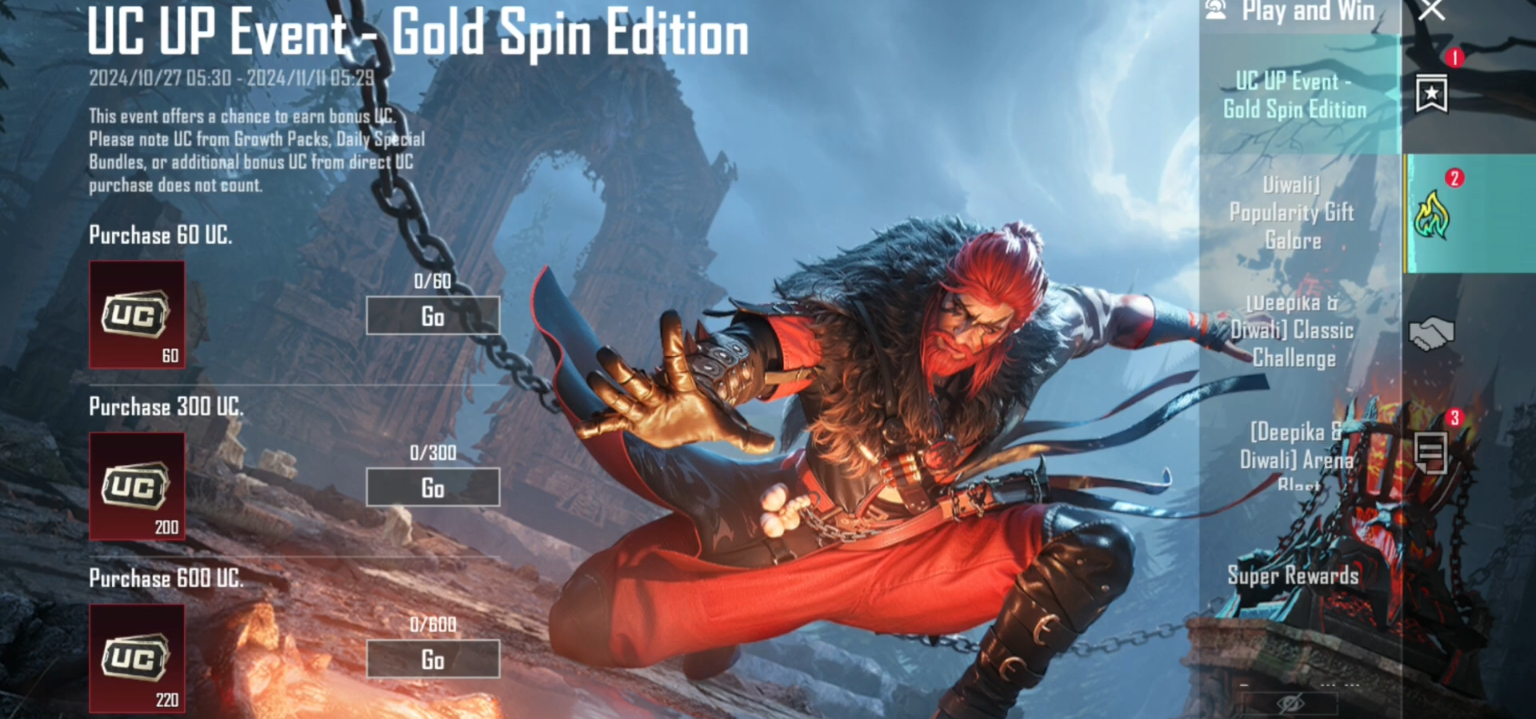 您可以将每日 UC 购买与每周或每月的支出结合起来,以充分最大化奖励。惊人的购买将帮助您从常规 UC 购买奖励和活动奖金中获得收益。