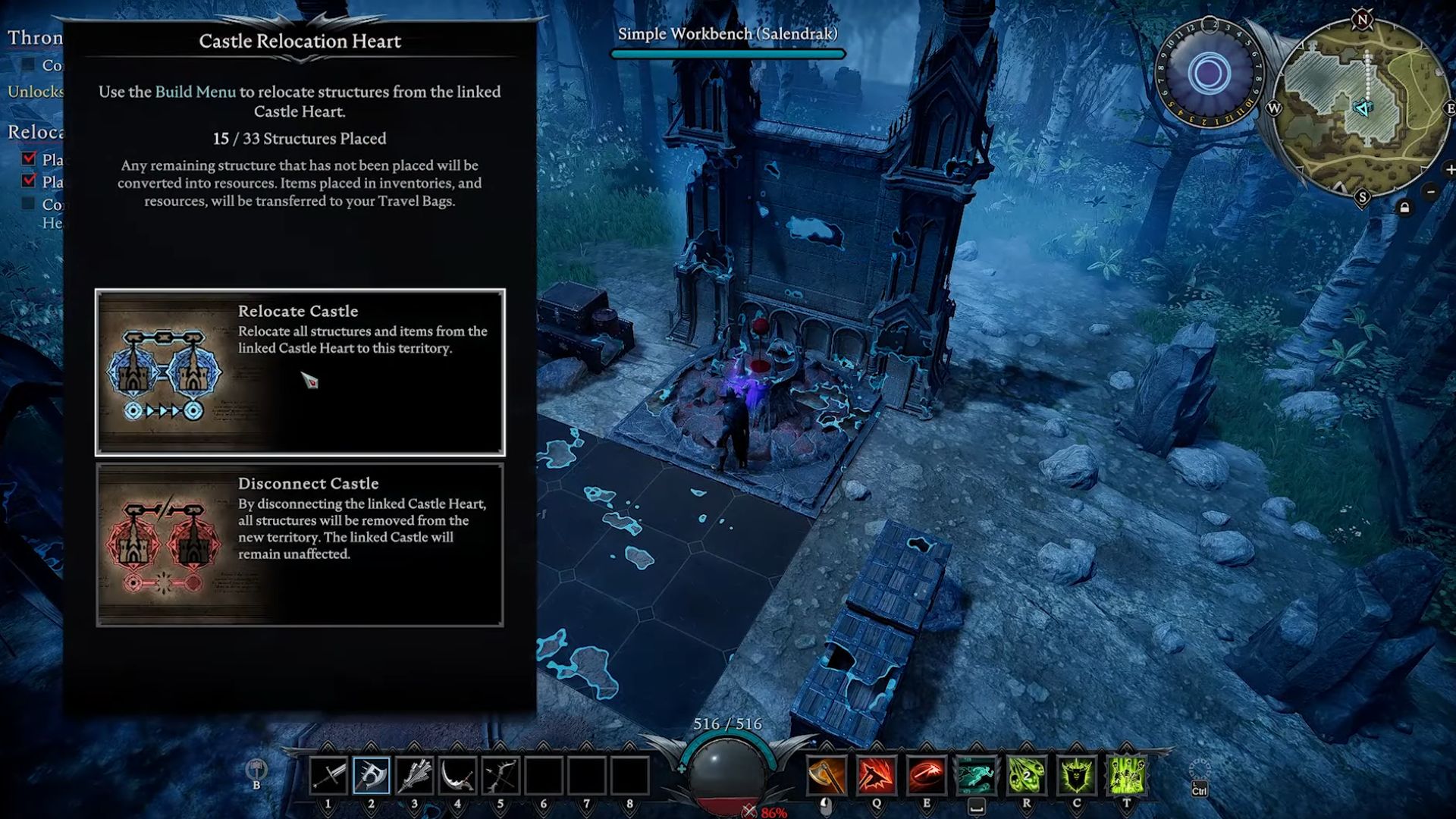 在《V Rising》的抢先体验阶段,玩家必须拆除整个城堡并在其他地方重建才能重新安置。当然,这样既费时又不方便,尤其是基地很大,建筑不止一栋的时候。值得庆幸的是,开发者决定给这款游戏一个完整的版本,现在在游戏中移动你的城堡变得更加容易。玩家现在可以在城堡搬迁之心的帮助下搬迁 V Rising 中的城堡。