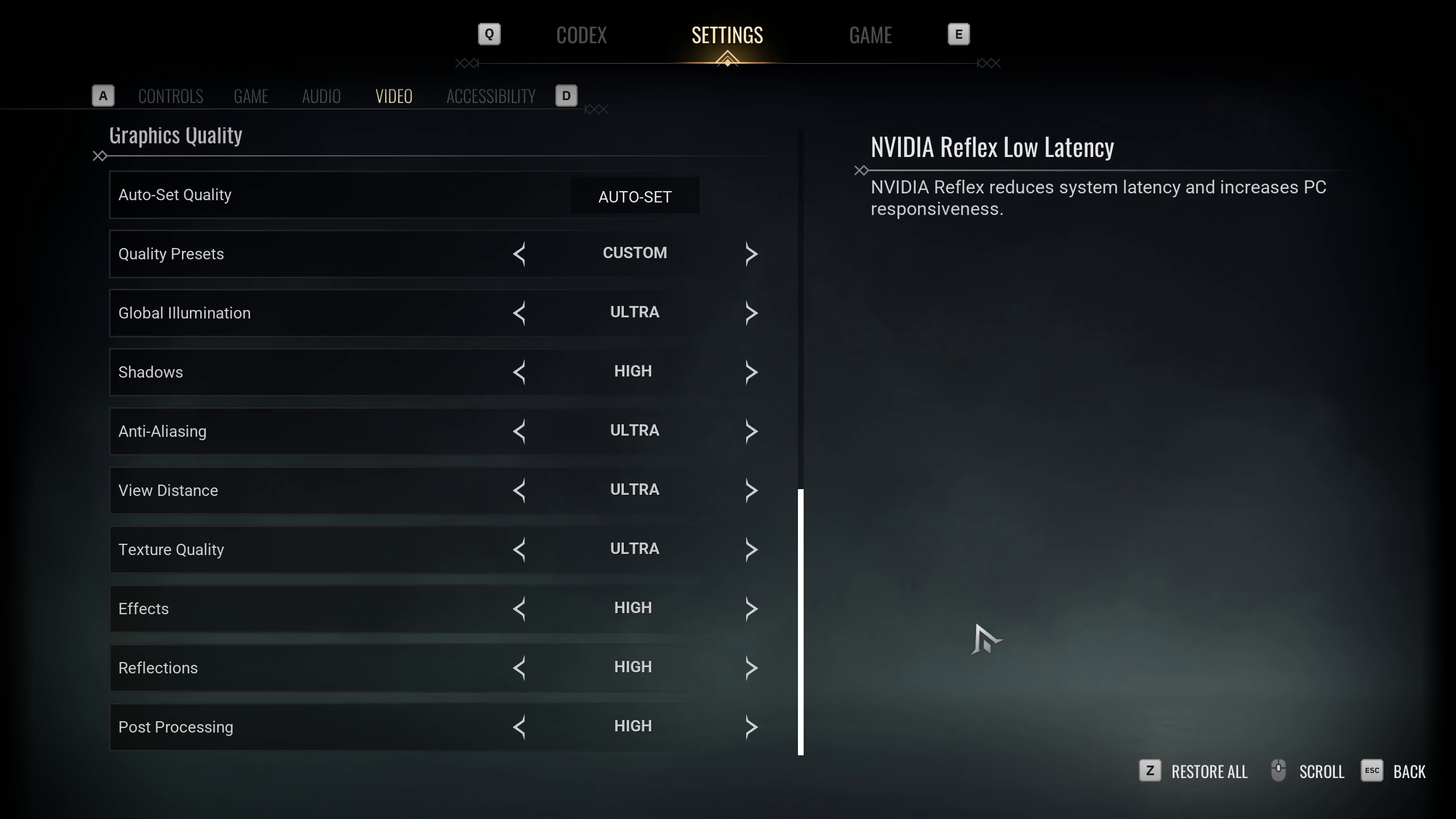 笔记:下面提供的设置基于游戏的推荐规格,不应用于高于 1920 x 1080 的分辨率。