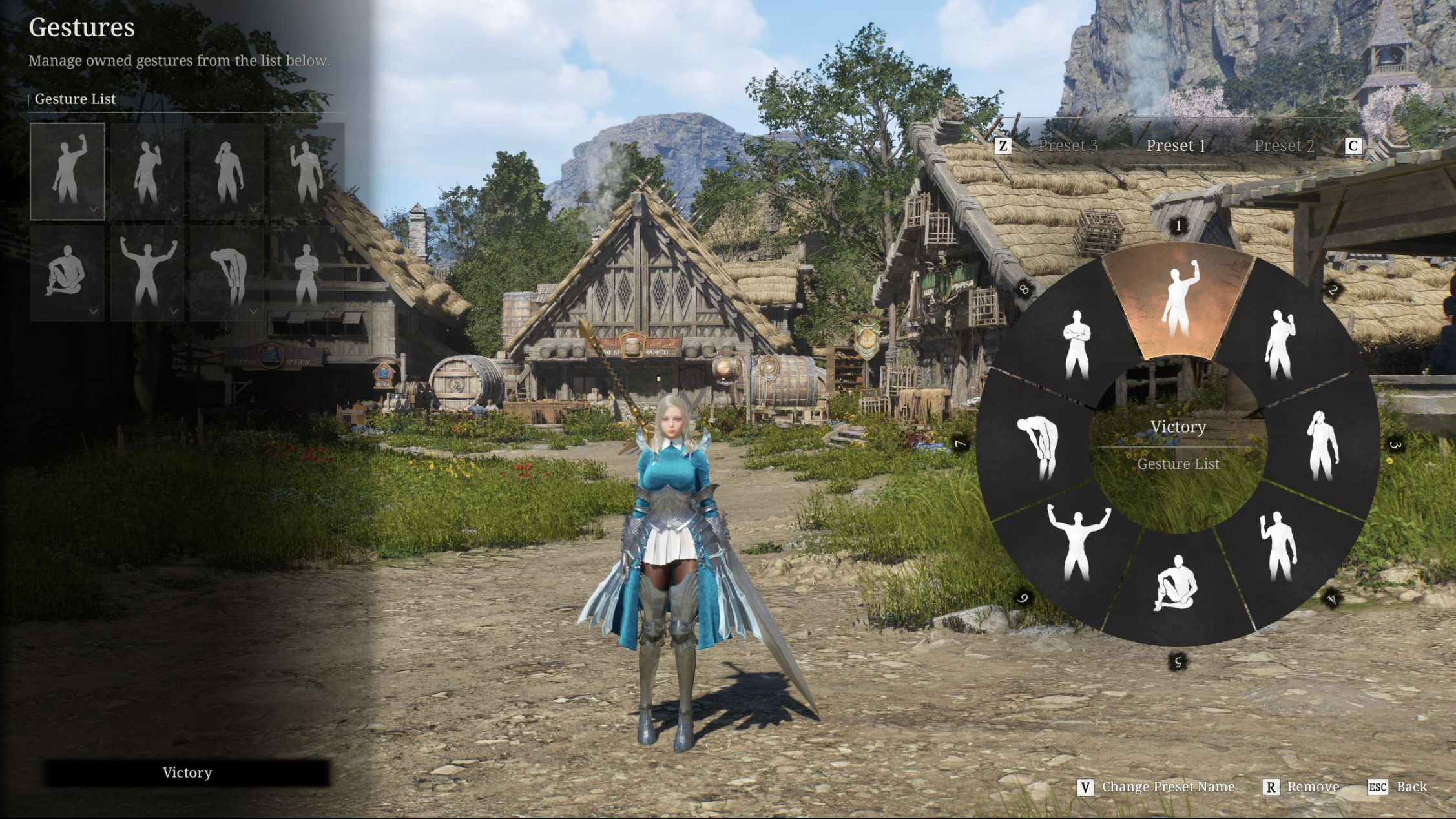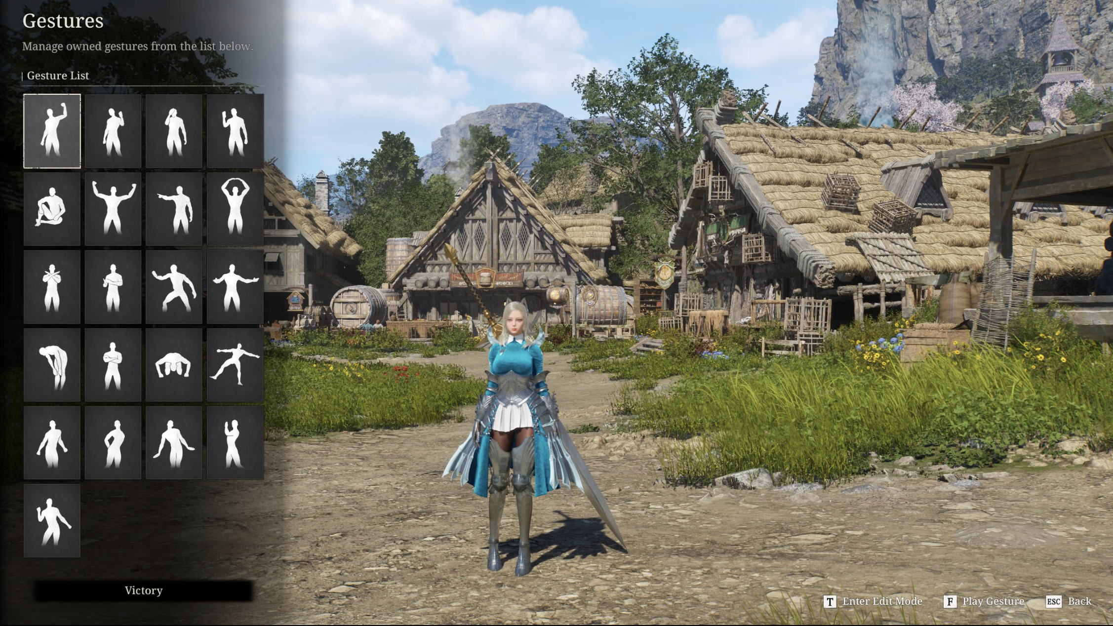 该角色允许每个班级有不同的手势和动作。这有助于反映他们角色的个性,以匹配他们的身材和魅力。有些手势可以在不同班级之间共享,并且不受性别限制。这些手势主要用于在多人游戏会话期间与其他玩家进行交流。