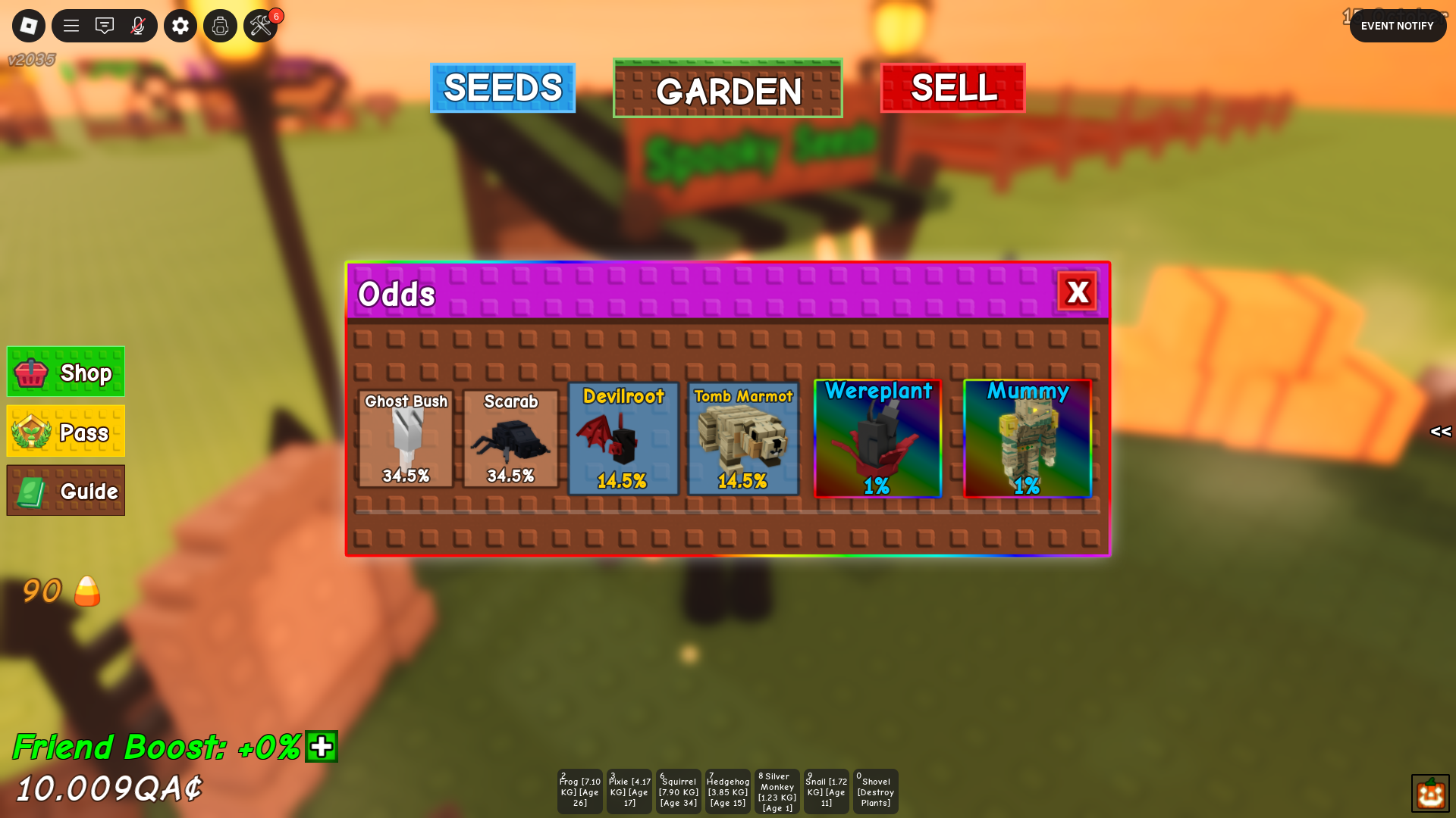 - 幽灵宝箱(34.5%):从万圣节市场的幽灵种子商店购买,该市场每小时出现在地图中心。每个箱子的价格为 30 玉米糖或 199 Robux(如果直接购买)。