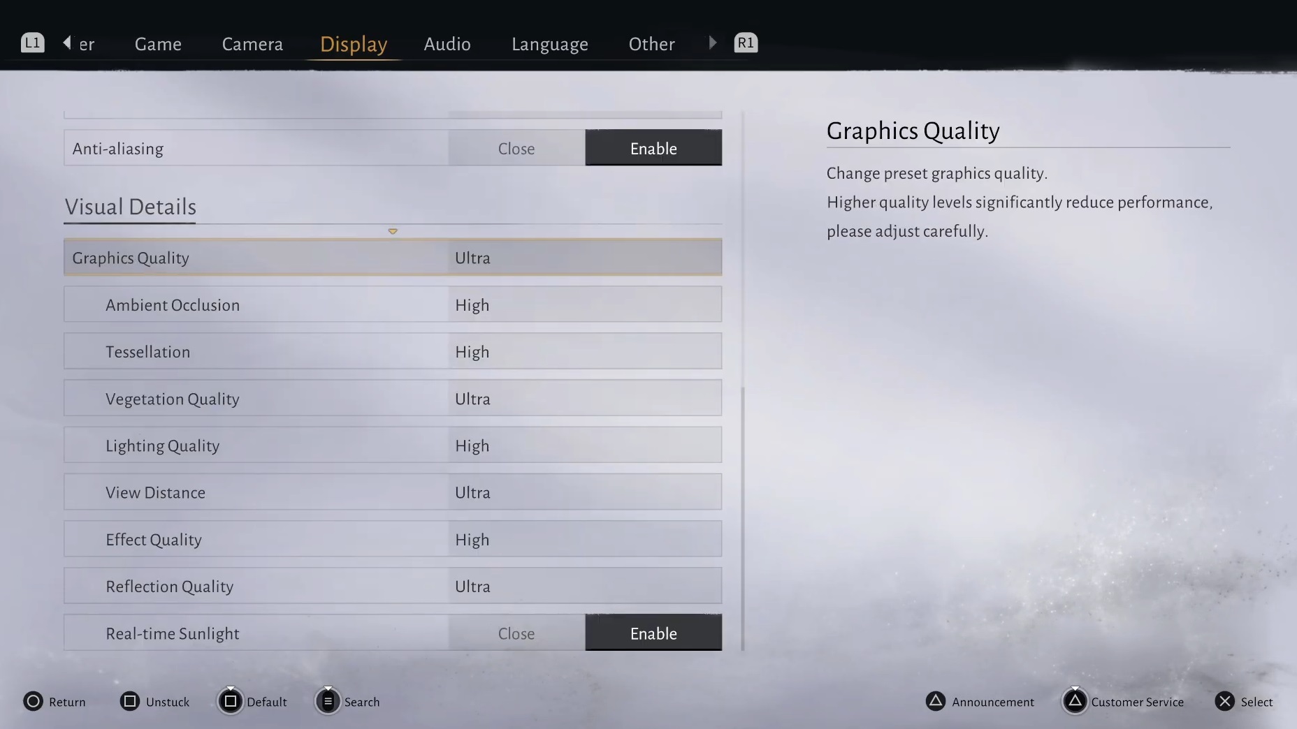 首先,游戏中存在大量的闪光。由于环境中充满了草、网格和树叶,因此享受游戏变得非常令人不安。以下设置主要关注视觉效果,旨在修复闪烁问题,提供最佳的游戏体验。