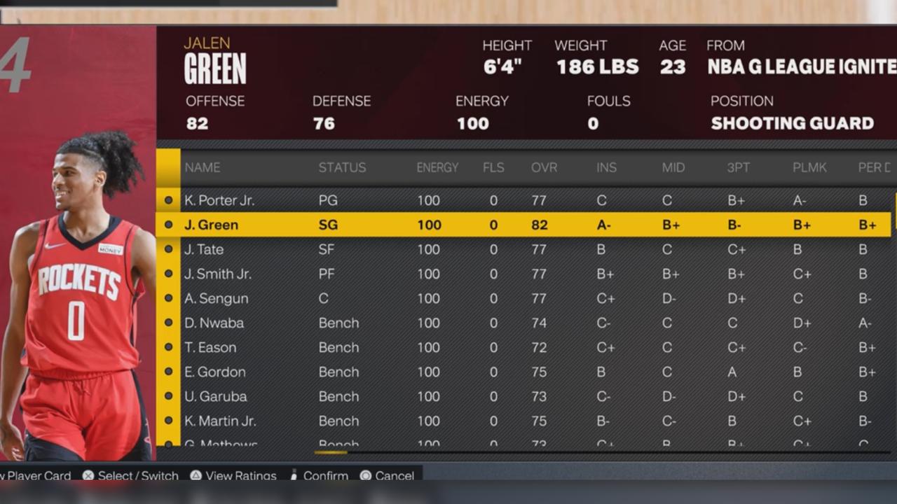 格林在比賽中的 OVR 評分為 83,超過了經常與他比較的其他 NBA 球星,例如德尼·阿夫迪亞 (Deni Avdija),他的 OVR 評分為 82。
