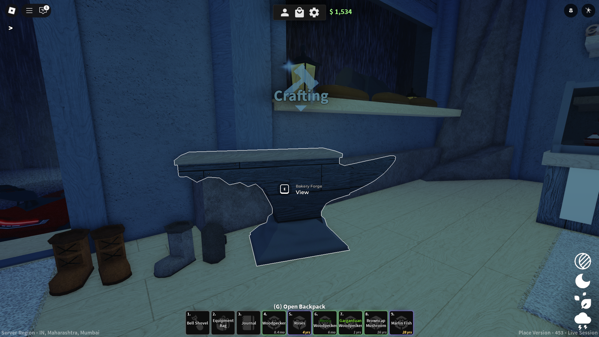 找到熔爐後,與其交互以打開熔爐 UI。您將需要特定的資源,具體取決於您正在製作的東西,例如礦物、Boss 掉落物或古董零件。鍛造通常用於製造強大的裝備,例如地獄鏟、月亮裝備或 Boss 專屬工具。