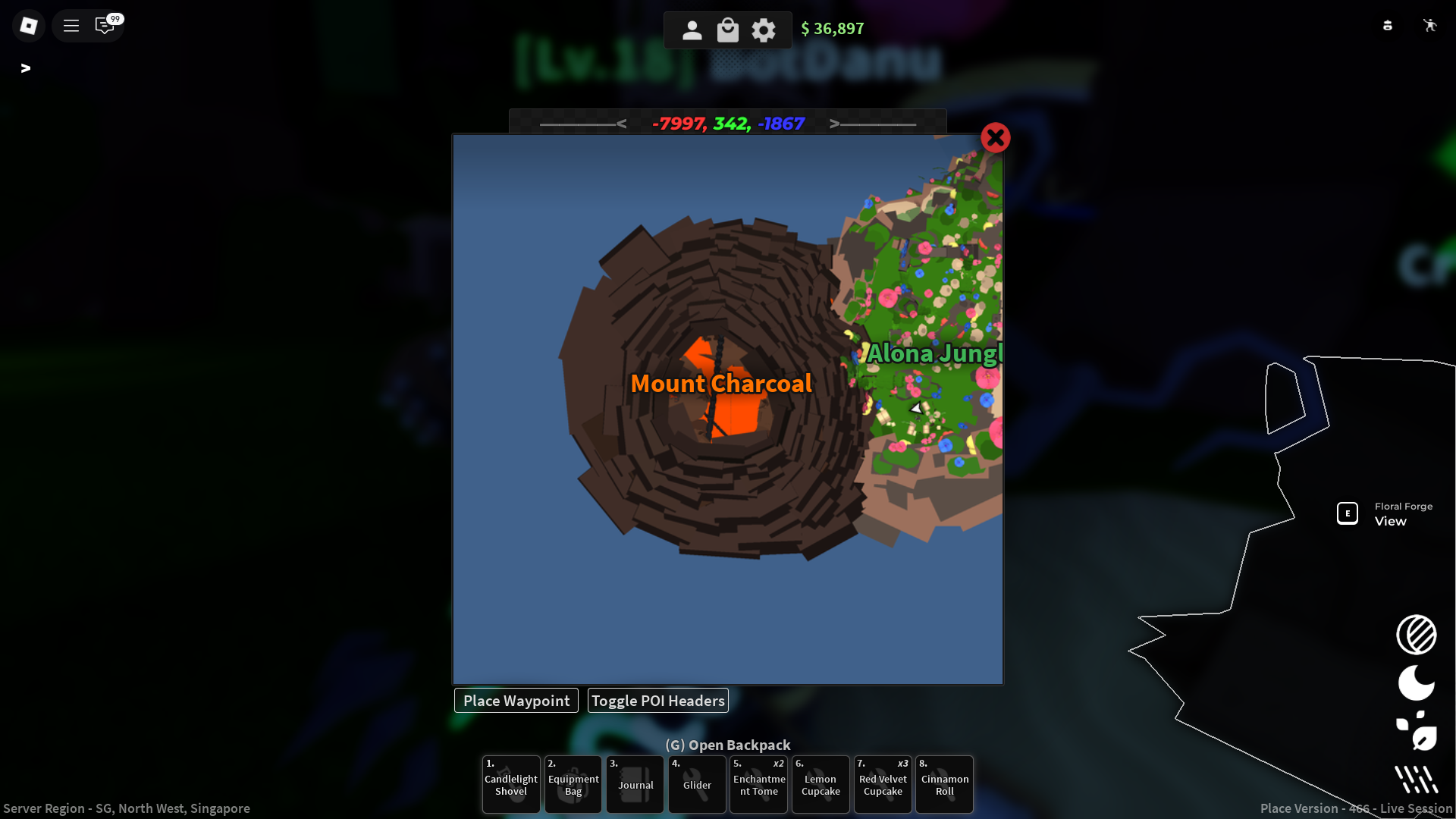 這個熔爐位於叢林深處,周圍有野生植物和動物。這是用稀有花朵、蟲子和其他叢林發現物製作裝備的好地方。非常適合追求傳奇或棱柱形物品的收藏家。
