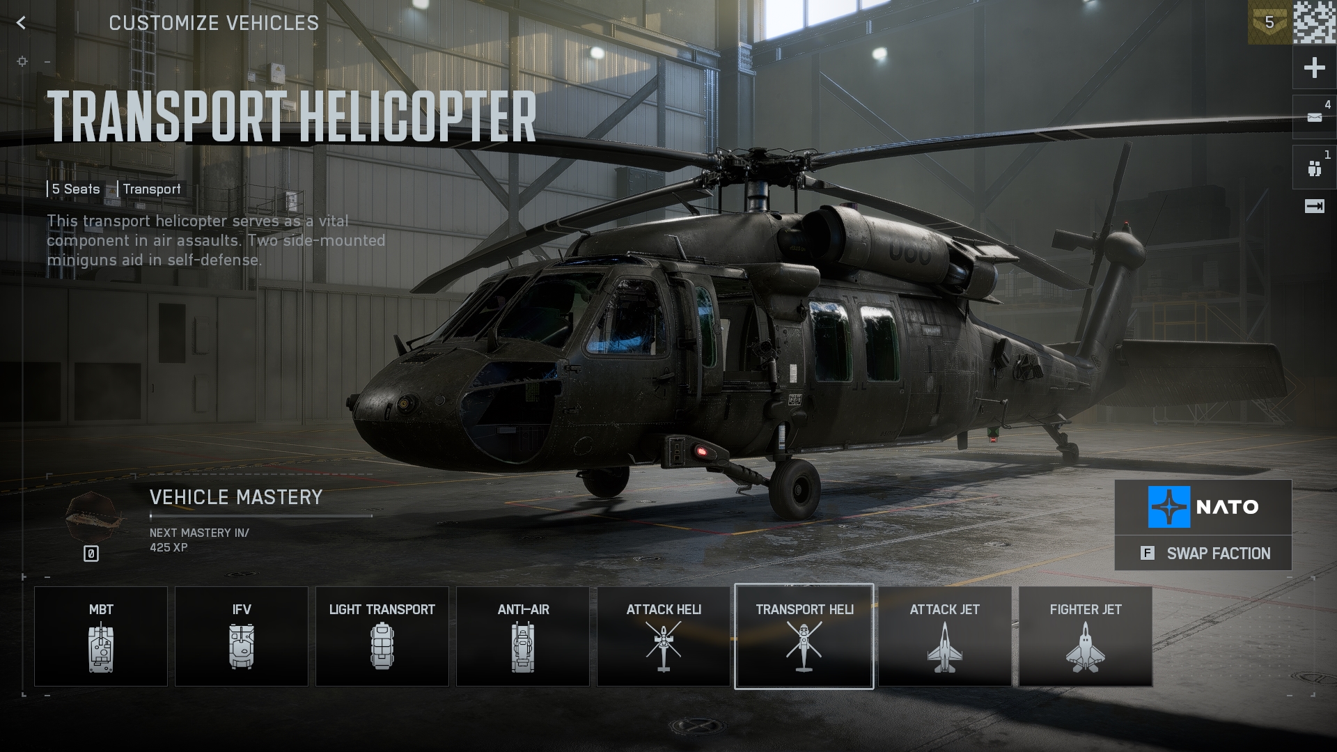 顧名思義,運輸直升機是為運輸而設計的。它有五個座位,移動速度非常快。在進攻方面,這架直升機有兩門迷你槍,可以讓你的隊友從上方提供掩護。