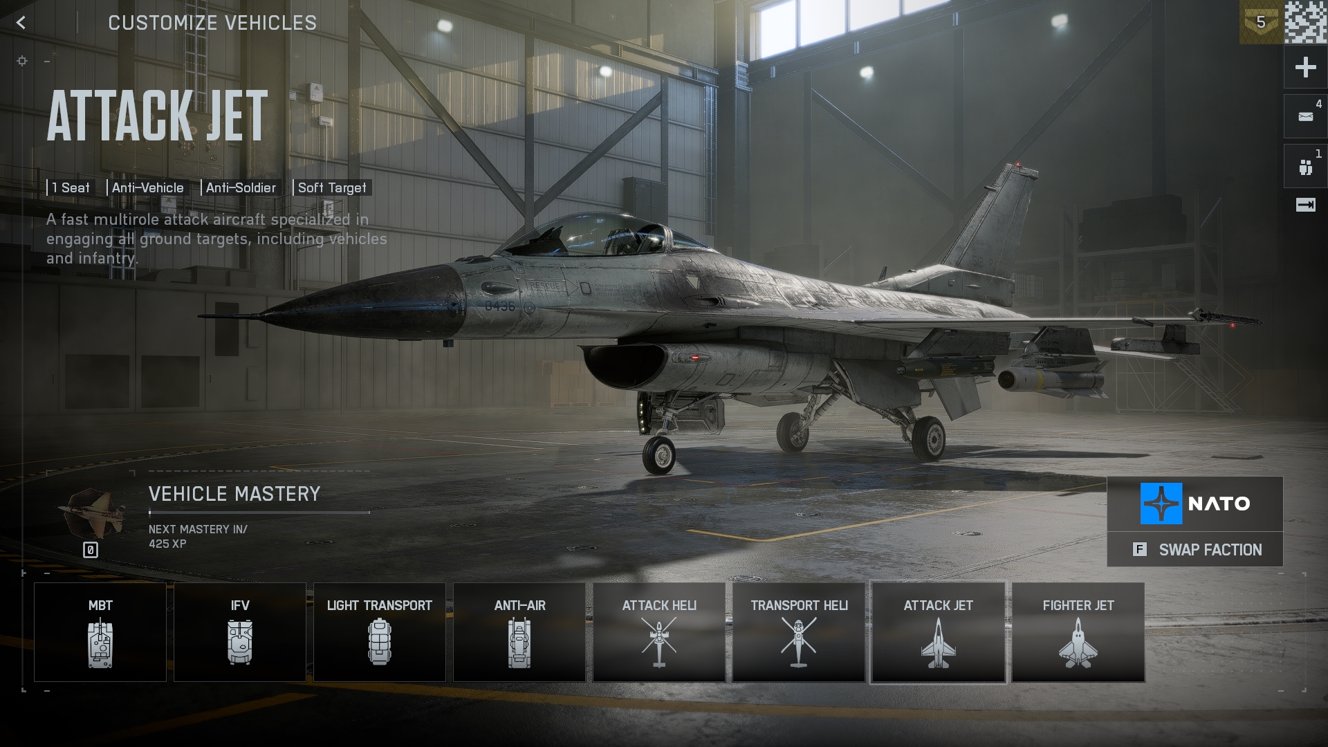 攻擊噴氣機是一種能夠摧毀任何類型的敵方步兵或車輛的機器,是一種快速的單座空中單位,可以發動一連串精確的攻擊。與其他車輛不同,它不會在地圖上生成。要獲取它,您必須等待其部署。請注意,一次只有一名小隊成員可以使用此車輛。