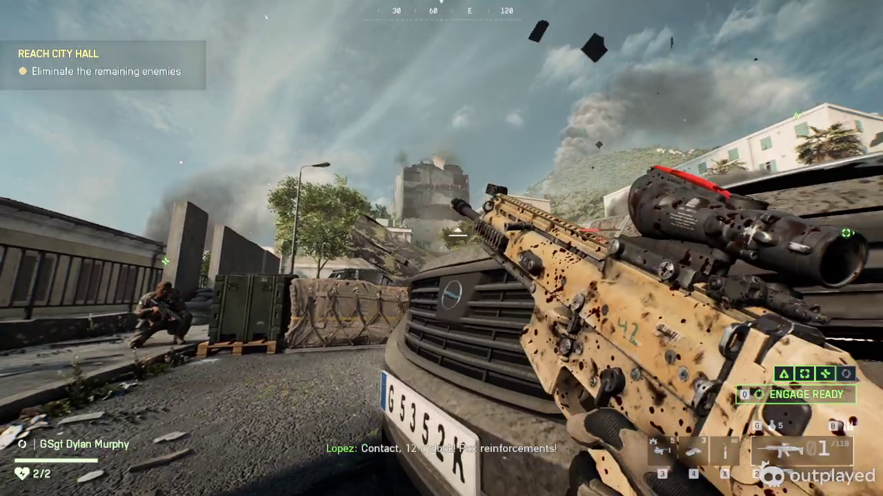 你的小隊的任務是護送一輛友好的裝甲車(呼號為“查理 5”)前往市政廳。整個階段充滿了槍聲、破壞反坦克 砲塔,敵軍,並在修復過程中查理5號車輛。完成此階段後,下一步就是保護小巷的安全。