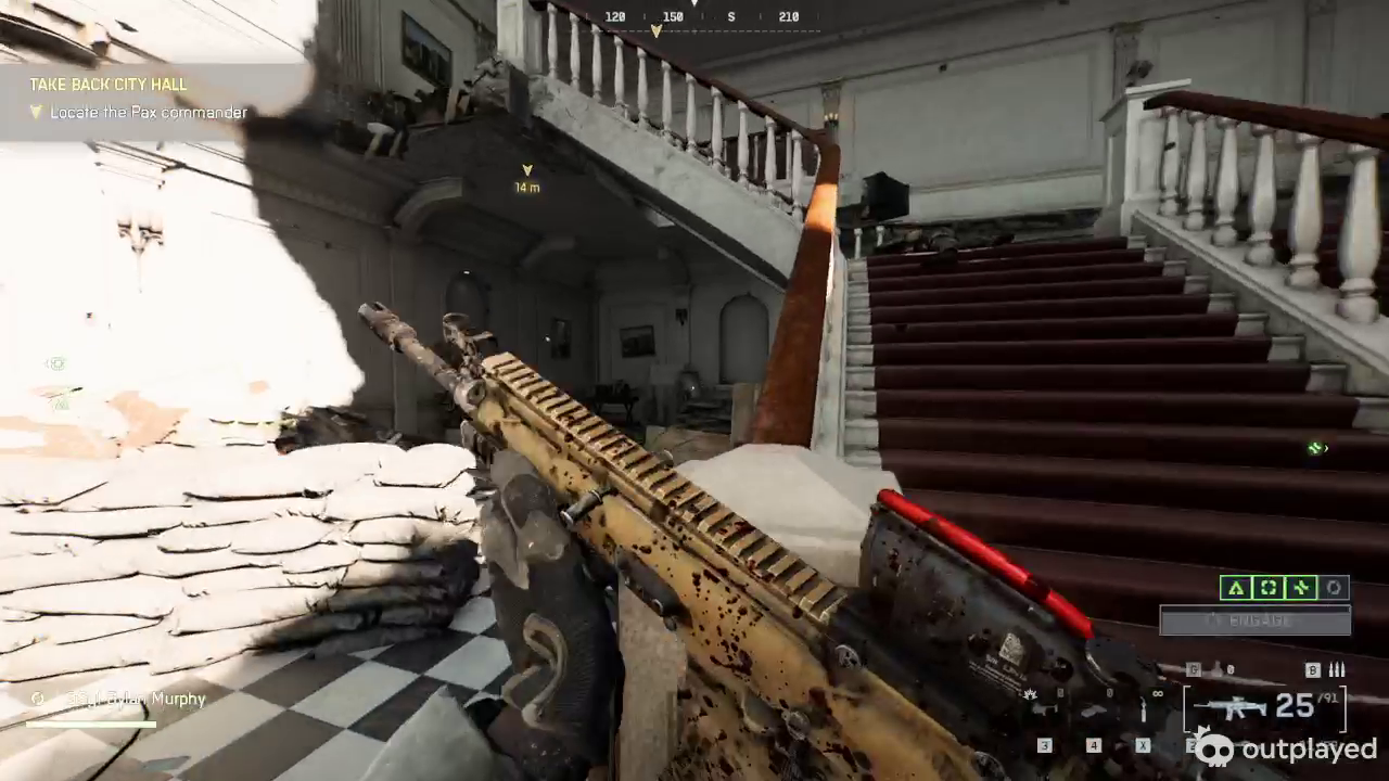 你將需要保護海軍陸戰隊免受重砲襲擊sualties。與此同時,你的小隊幫助受傷的士兵免受與聖黨軍隊的戰鬥。在幫助某個特定的士兵時,隨著互動的展開,你會發現他說:“只有我”,就像你一開始對另一名士兵說的那樣。