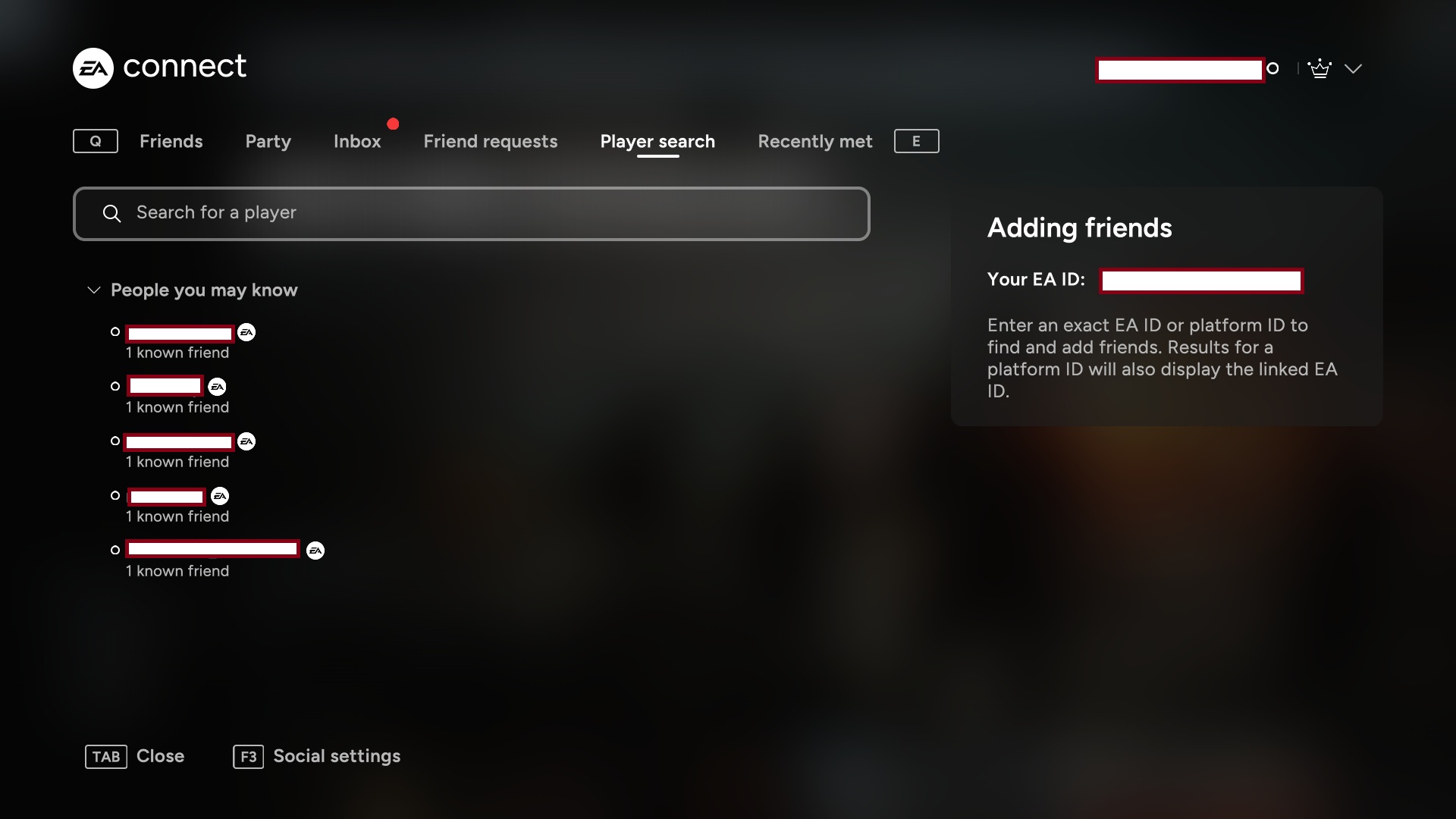 - 在此輸入您朋友的 EA ID 或平台 ID。