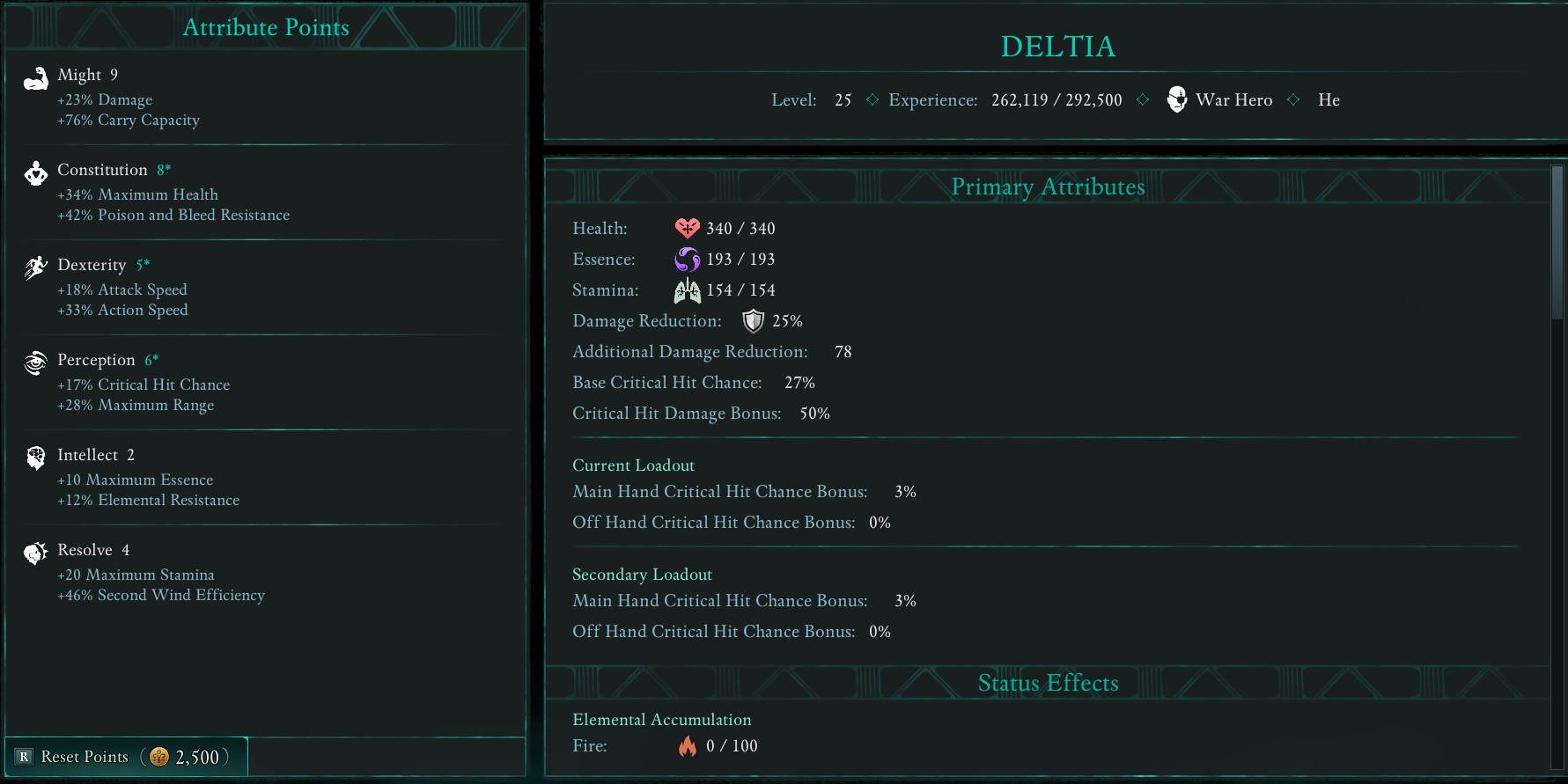 - 屬性點:力量、憲法和決心