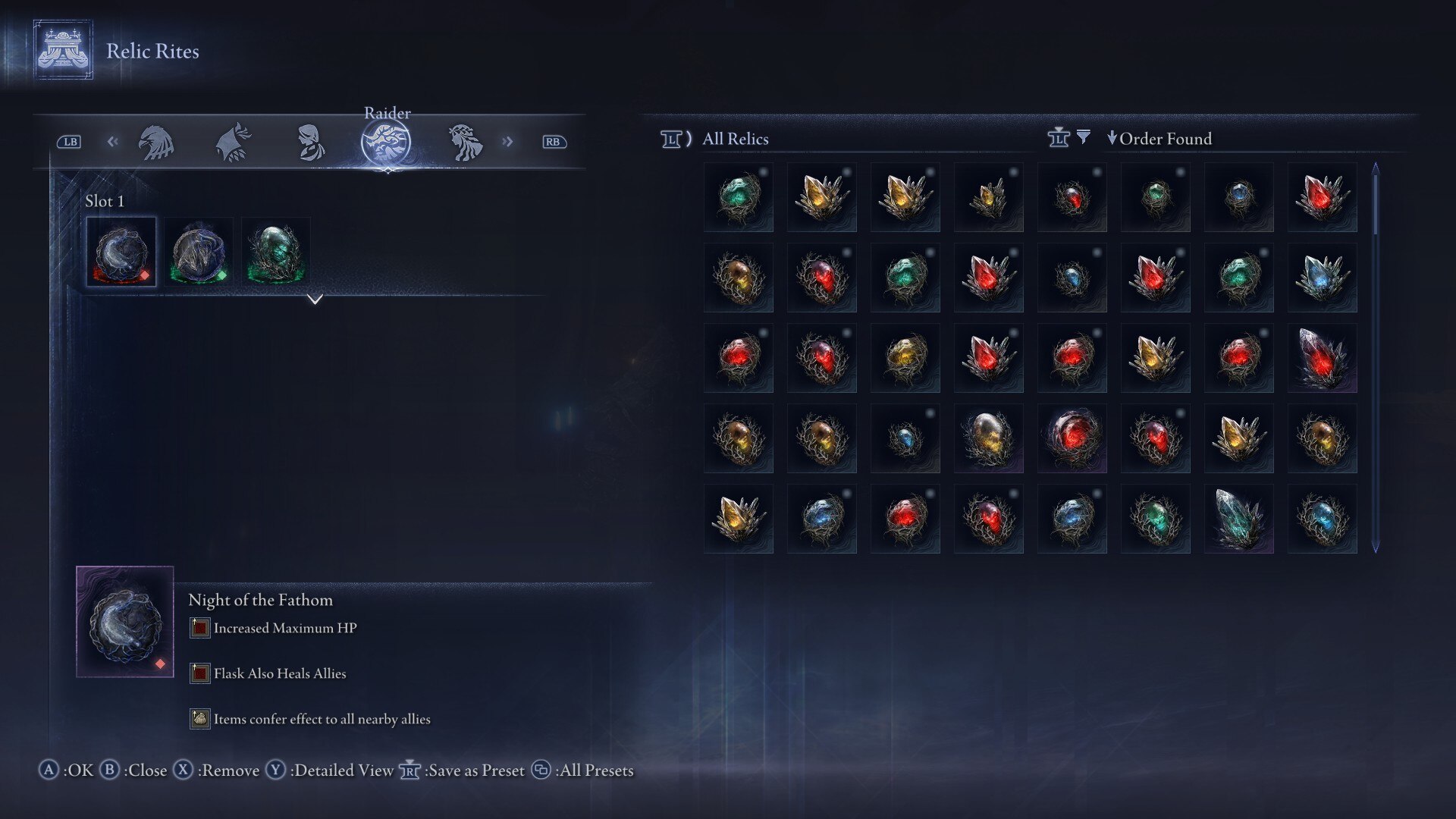 您還可以將秩序邊緣與另一件授予您的遺物交換聖從一開始。然而,除了回憶和夜領主之外,夜王中的遺物都是 RNG,獲得聖物可能相當困難。