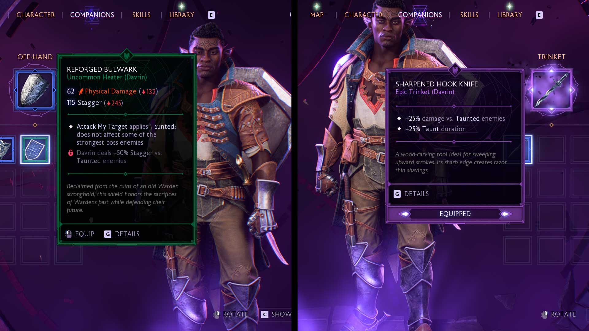 雖然達夫林的盔甲套裝都不能改變他的嘲諷效果,但它們有一個可能的盾牌和飾品,你可以裝備它們來增強他的嘲諷。最好的裝備是鋒利的鉤刀飾品。一旦提升到史詩級別,您將解鎖最終的特質獎勵,使戰吼嘲諷持續時間增加 25%。將此與“快速憤怒”能力升級相結合,Battle Cray 的冷卻時間將接近 16 秒,而不是 28 秒。