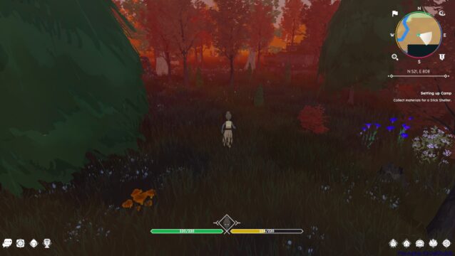 MMO 旨在從一開始就易於上手,通過點擊移動的遊戲玩法強化了其輕鬆的設置和低風險的開始。你從製作循環開始,其中包括收集材料、創建工作站和搭建你的第一個帳篷。一旦你紮好了帳篷,你就可以放置一個圖騰來防止其他玩家在一段時間內打擾它。更高的級別將需要更多的資源和更長的構建時間,但世界上的玩家將能夠互動並幫助你。