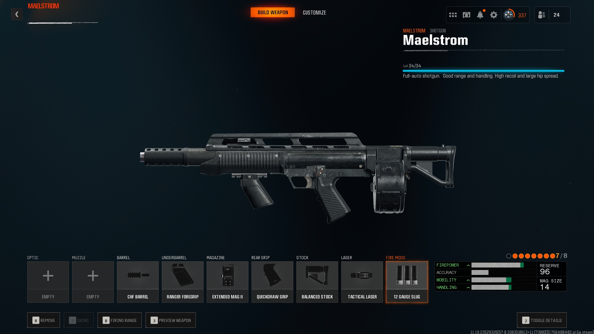 - 火力模組:12 號子彈或速射