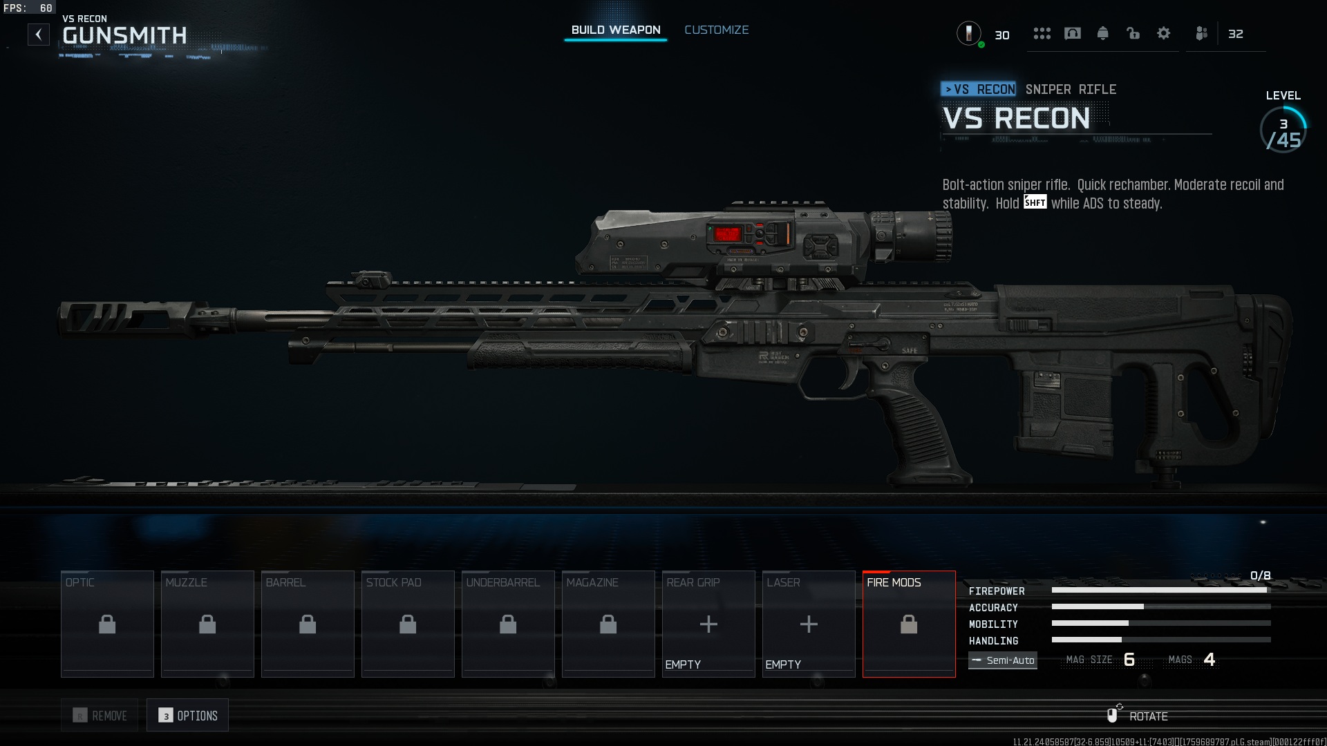 最後,輕型螺栓火力模組提高射速和重新裝填速度。由於它是栓動步槍,操作員每次射擊後都必須手動裝彈。這可能非常耗時。幸運的是,Light Bolt Fire Mod 使事情變得更加固定,讓你可以快速連續射擊。但它會降低子彈速度並增加後坐力。