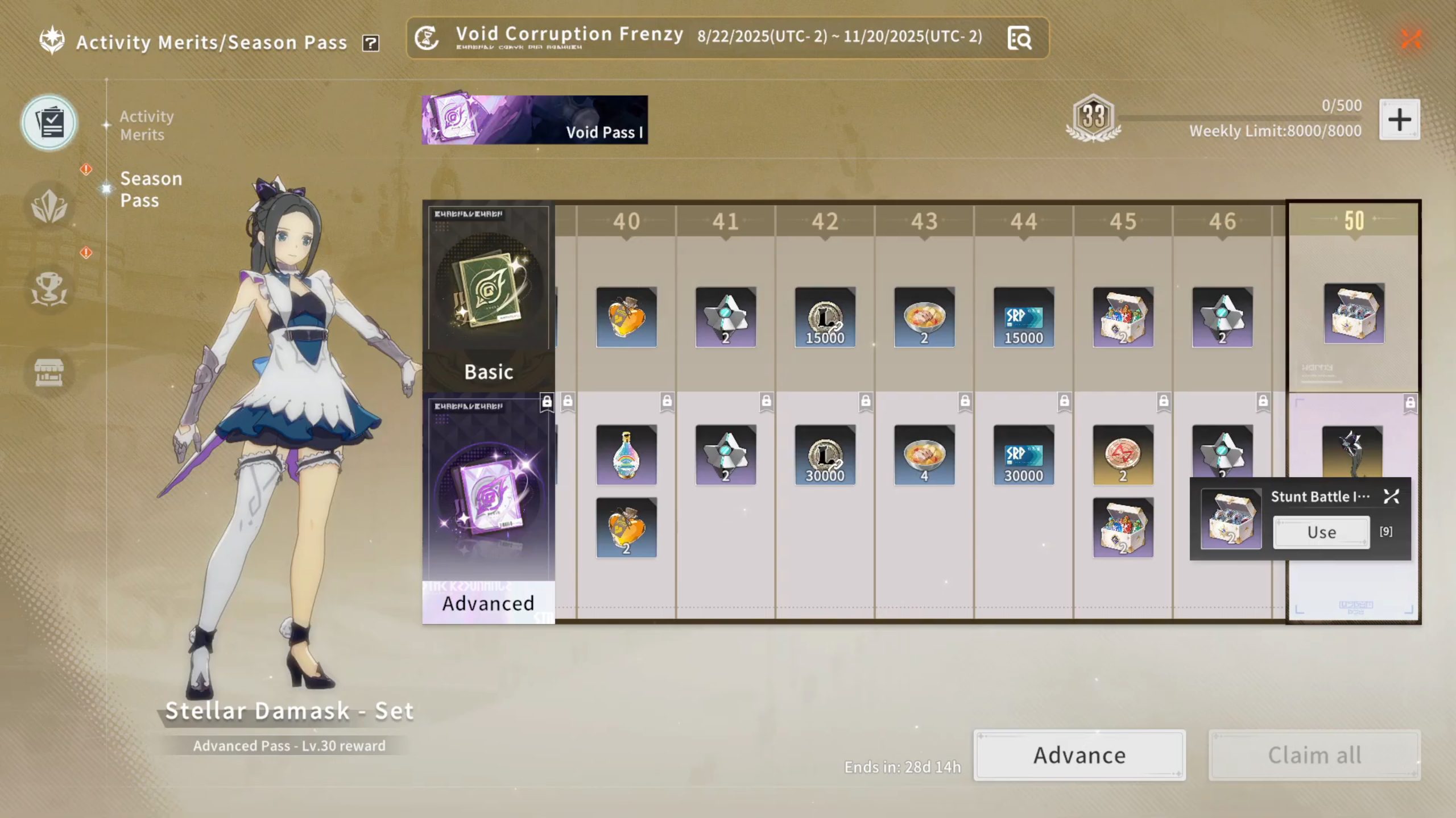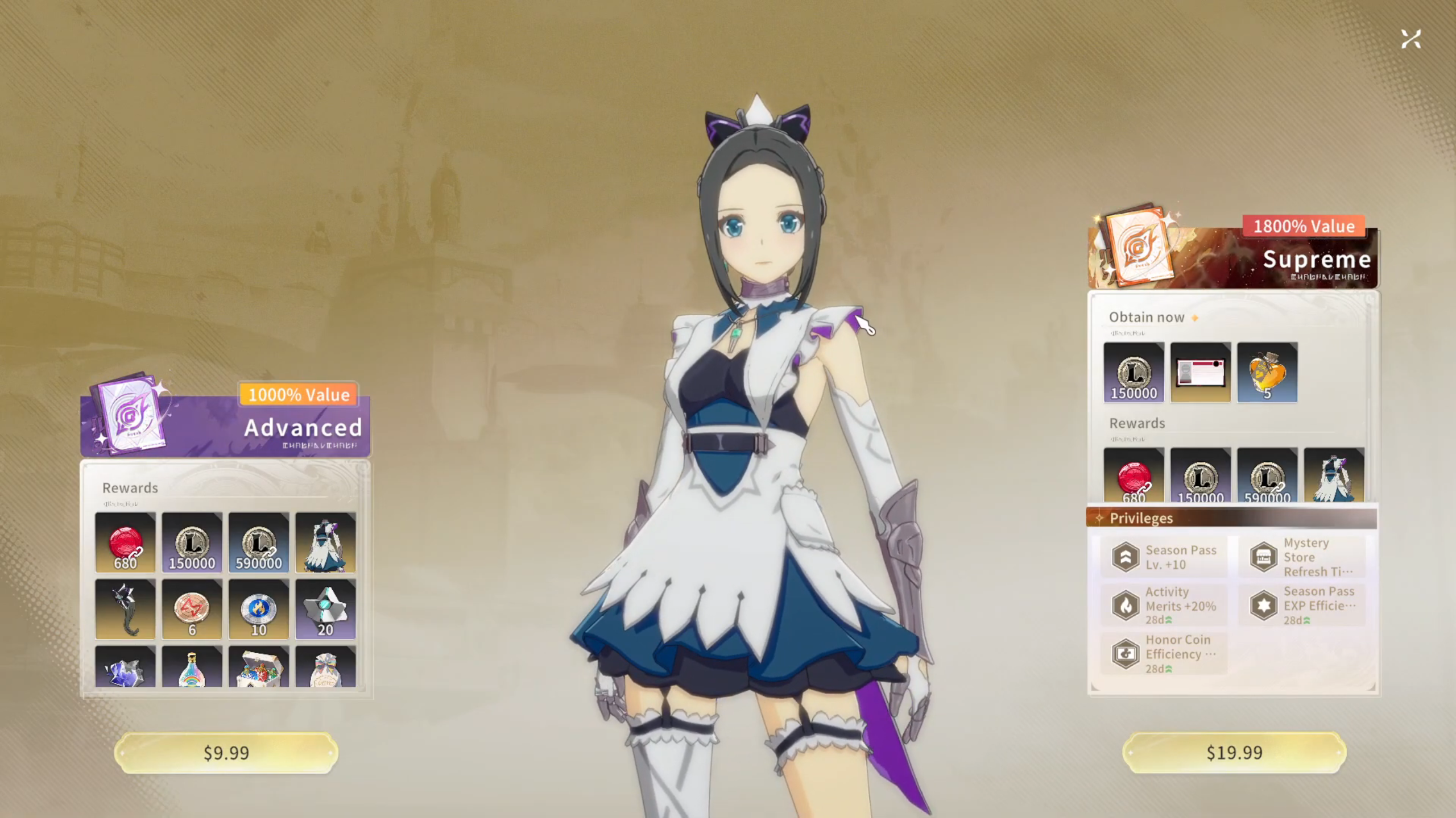 此級別是付費的,但提供額外的好處。與基本層相比,您將獲得雙倍的獎勵,並解鎖高級層和至尊層獨有的特殊服裝。