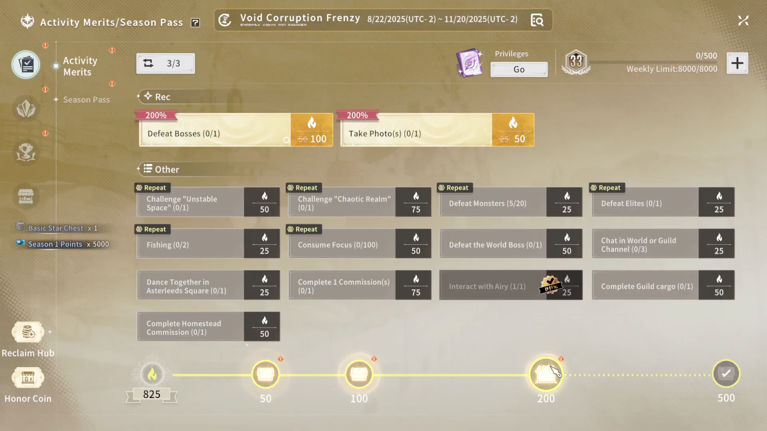 升級達到功績里程碑可解鎖各種獎勵。完成“活動優點”部分中的釣魚、擊敗怪物以及與其他玩家互動等目標將為您提供進步所需的積分。如果您不喜歡某個特定任務,您可以刷新它,但刷新次數有限,因此請謹慎使用。