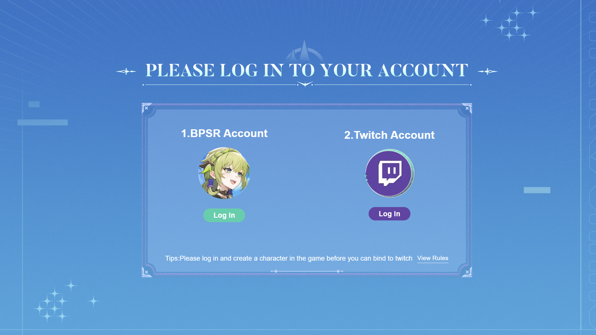 之後,訪問藍色協議星共振 Twitch 綁定頁面在他們的網站上。首先,點擊登錄您的 BPSR 帳戶登入。之後,單擊登入Twitch 選項卡下的按鈕。這樣做會將您重定向到授權頁面。完成此操作後,您的帳戶將被鏈接。
