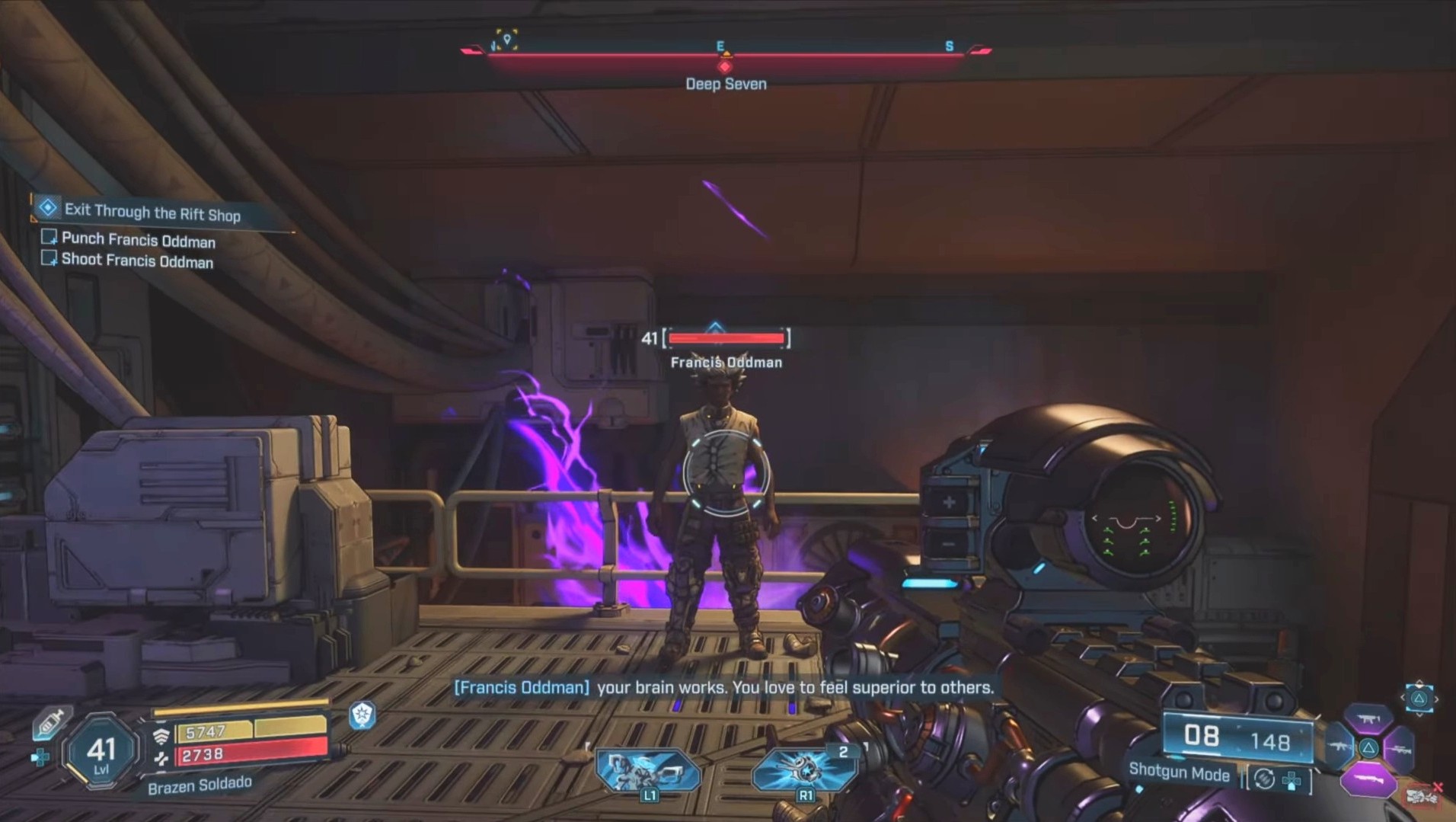 奧德曼相信傳送門的另一邊有天堂,他派你去為他損壞的設備獲取替換零件。然而,你很快就會發現奧德曼對你並不完全誠實。完成所有任務後,倒數第二個目標將是“對抗弗朗西斯·奧德曼。 ”