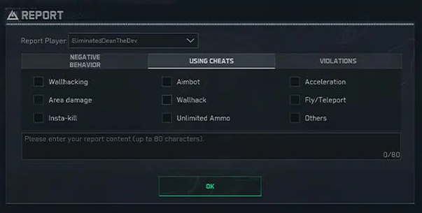 玩家在維護遊戲的完整性方面發揮著重要作用。 G.T.I.鼓勵通過遊戲內報告工具和 G.T.I. 積極報告保安站。只有形成統一的力量,才能盡可能有效地識別和消滅作弊者。