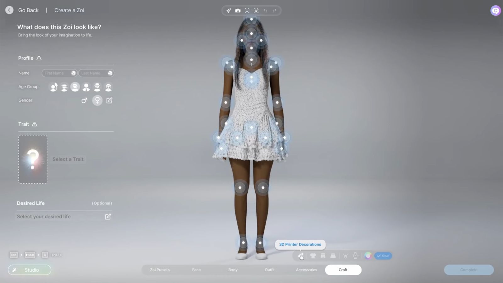 “3D 打印機”系統是遊戲中的一項功能,可根據插入的圖像創建對象。玩家可以使用這些物品來裝飾角色或更換家具。例如,您可以使用 3D 打印機功能上傳天使翅膀的高分辨率圖片。該工具將創建翅膀的 3D 渲染,然後您可以將其附加到角色的背部。