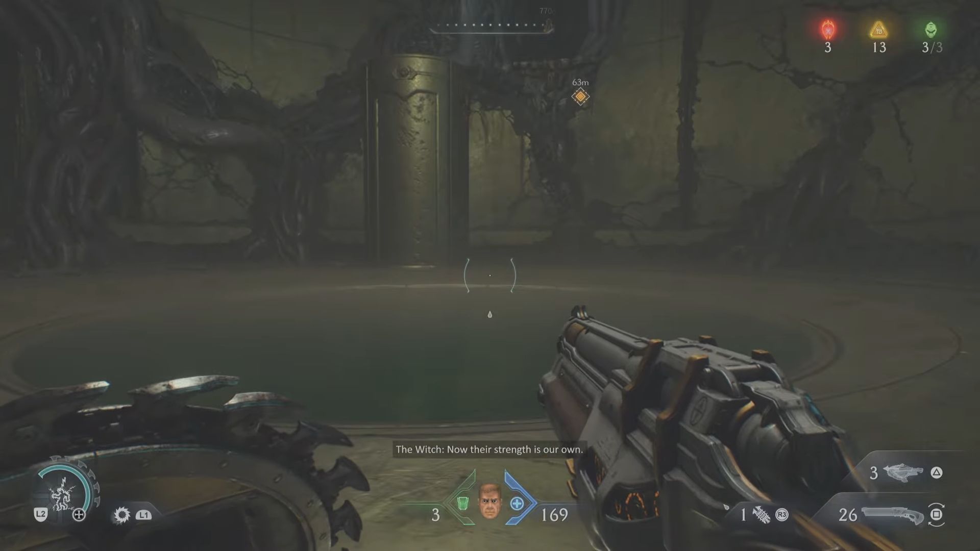 其工作原理相同,站在標記上並將盾牌扔向結構。它將打破擋住你道路的上鎖的大門。然後,跳進大門,穿過小小的水生裂縫,你就會進入一個惡魔較多的區域。將你的敵人撕成碎片後,繼續跟隨任務標記,直到你掉落到下面的區域,並找到一個里面有一個巨大的圓柱形結構的房間。