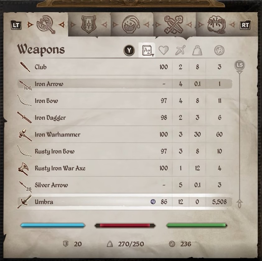 Umbra 是一把附魔劍,是遊戲中單手武器中基礎傷害最高的。這是一種獨特的武器,你可以通過在 Calvicus Vile 任務中消滅 Umbra 來獲得。由於傷害最高,這是最好的劍,可以與盾牌一起使用,同時具有高輸出傷害和高防禦屬性。而且,這把武器不僅僅是一把普通的長劍,它還可以困魂。你會在非常情況下使用這個,除非你有一個金牌,你可以用暗影困住的靈魂充電。