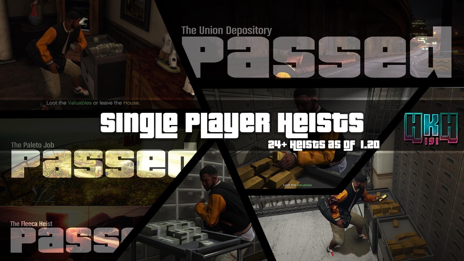 如果您想享受 GTA 5 的搶劫任務,但沒有一群朋友,那麼這個模組適合您。單人搶劫模組允許您獨自完成所有搶劫任務。